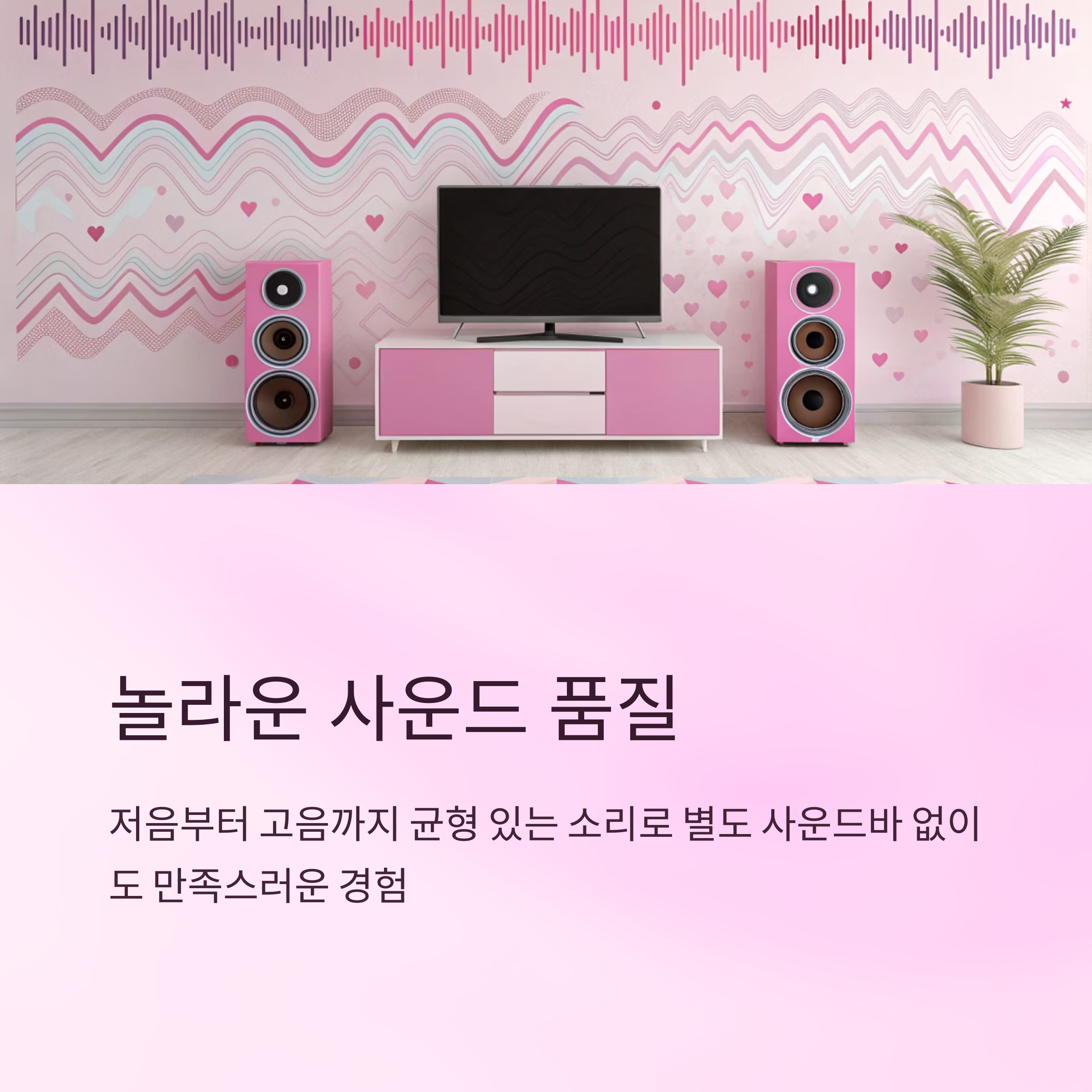 실제 사용해보면 저음부터 고음까지 균형 있는 소리가 잘 퍼져서, 별도의 사운드바 없이도 웬만한 콘텐츠는 충분히 만족스럽게 즐기실 수 있답니다. 특히 영화나 음악 프로그램을 자주 보시는 분들에게는 공간감 있는 사운드가 큰 장점으로 다가올 거예요.