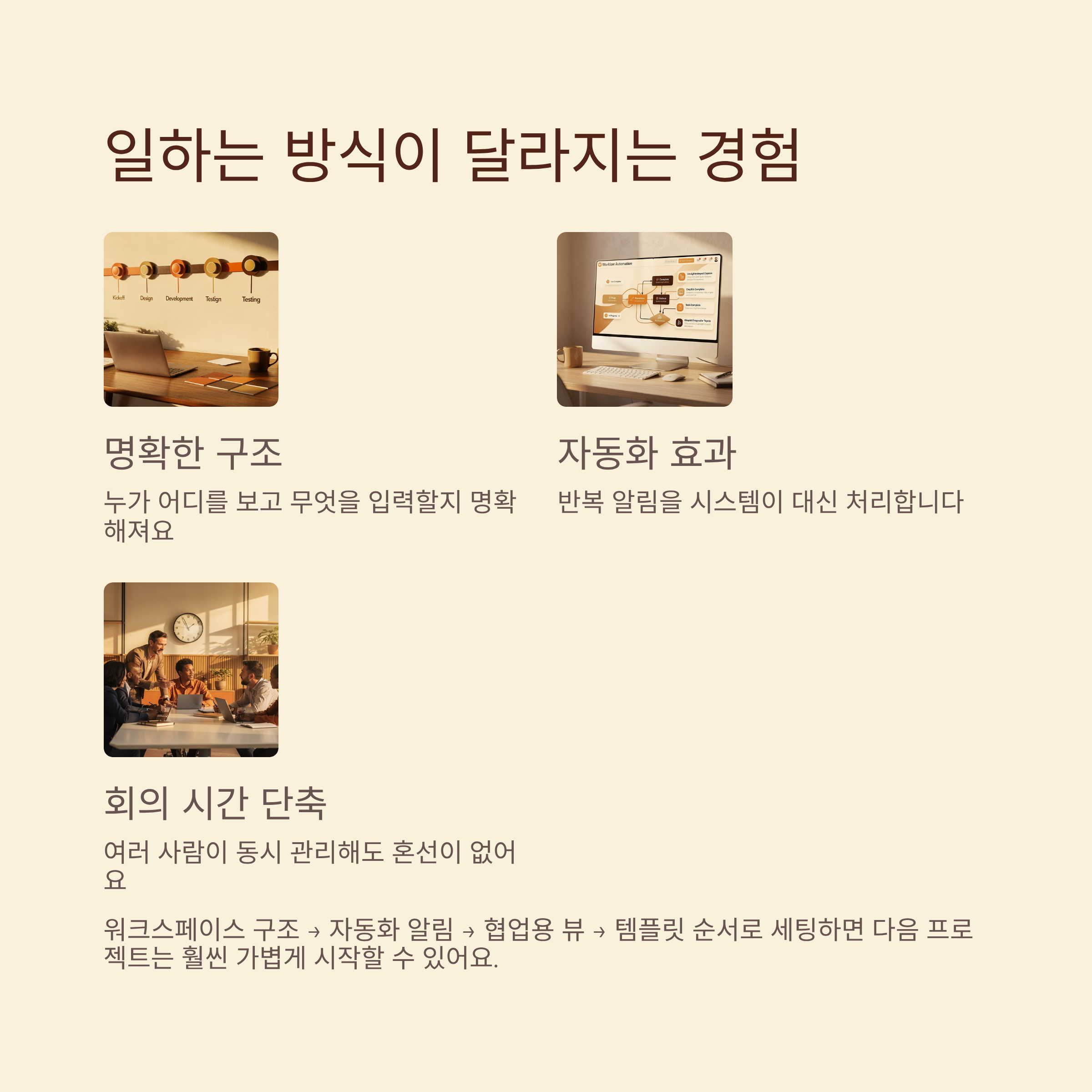 이렇게 만든 구조와 설정을 간단한 문서로 정리해 두면 새로 합류한 팀원에게 설명하기도 편해요. "이 템플릿만 복사해서 쓰면 된다"라는 기준이 생기면, 누가 먼저 들어오더라도 데이터 구조가 엉키지 않아요. 이 카드만 저장해 두셔도 다음 프로젝트를 세팅할 때 고민 시간이 훨씬 줄어들 거예요.