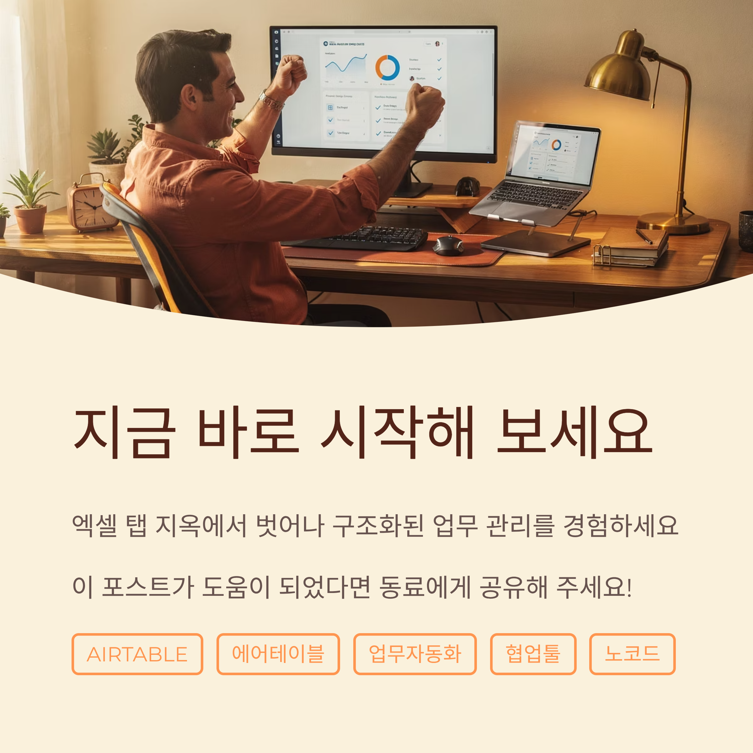 처음에는 그냥 또 하나의 스프레드시트 같아 보여도, 구조와 자동화를 조금만 만져 보면 일하는 방식이 꽤 달라지는 걸 느끼게 돼요. 특히 여러 사람이 동시에 관리하는 프로젝트일수록 누가 어디를 보고 무엇을 입력해야 하는지가 명확해져서 회의 시간도 자연스럽게 줄어들더라고요. 오늘 정리한 흐름대로 워크스페이스 구조 → 자동화 알림 → 협업용 뷰 → 템플릿 순서로만 한 번 세팅해 보시면, 다음 프로젝트부터는 훨씬 가볍게 시작하실 수 있을 거예요. 익숙해질수록 엑셀과는 또 다른 재미가 느껴질 거라 너무 겁먹지 않으셔도 괜찮아요.