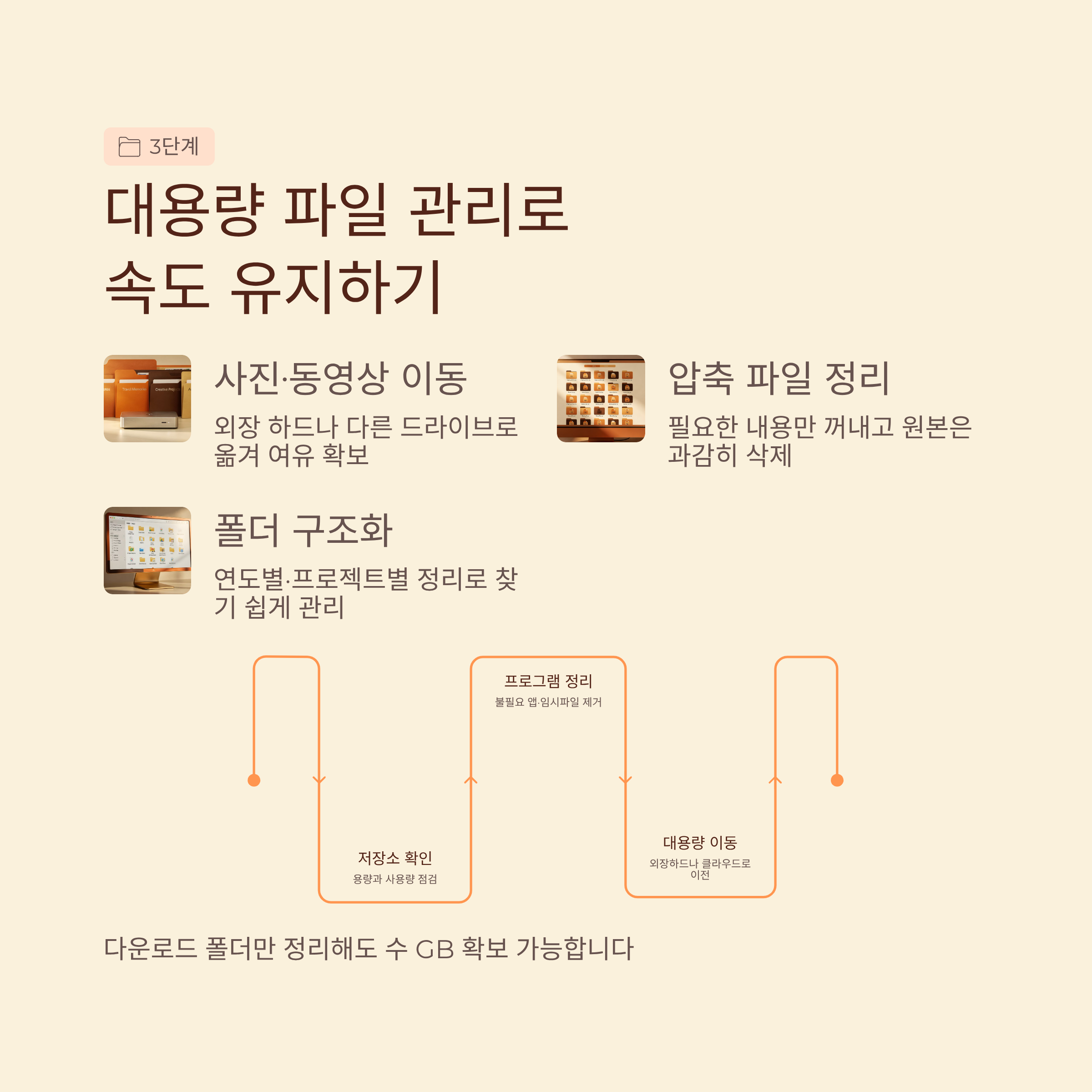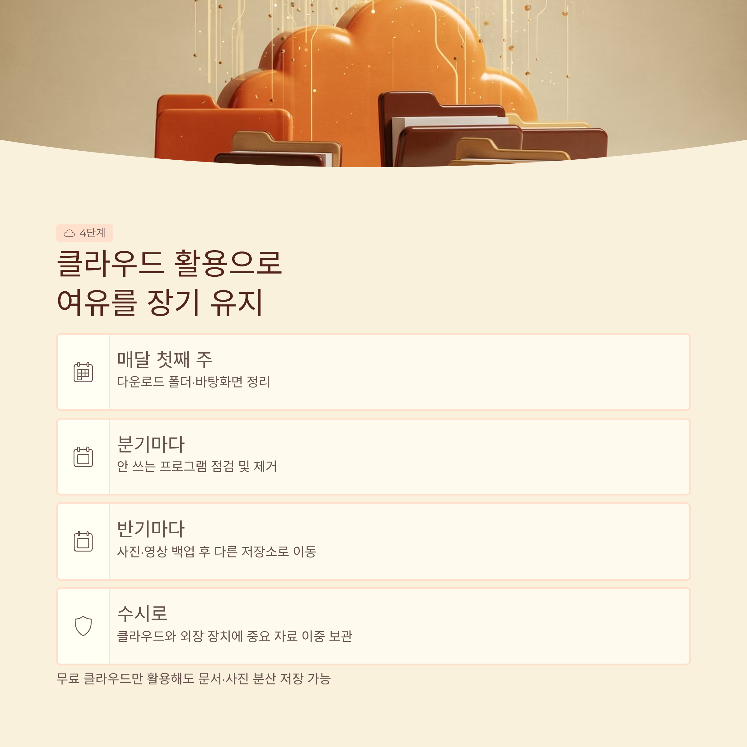 | 3단계 | 사진·영상 등 대용량 자료를 다른 저장소로 이동 |