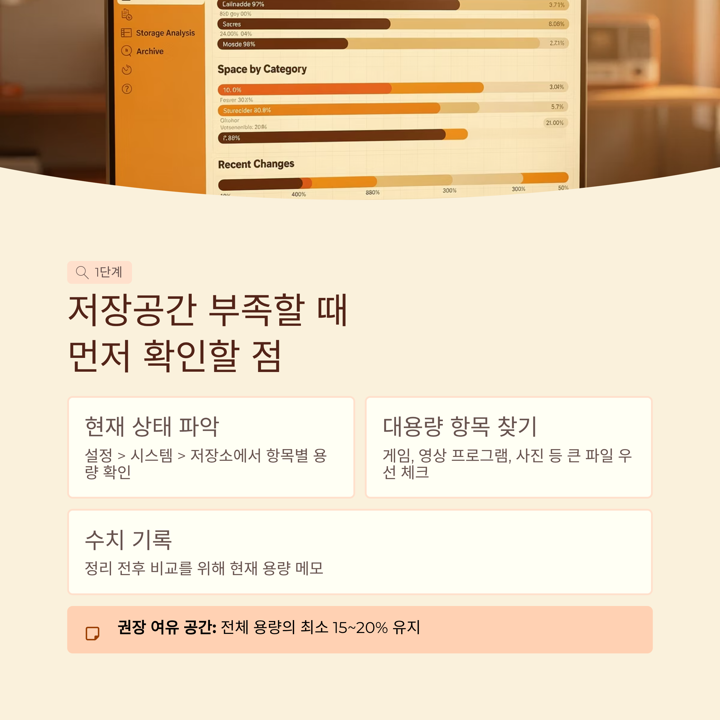 그리고 실제 용량 수치도 메모해 두면 나중에 정리 후 효과를 비교하기 편해요. 정리 전과 후의 차이를 수치로 보면 내가 뭘 했는지 더 분명하게 느껴지고, 다음에 또 정리할 때 기준점이 되어 주거든요.