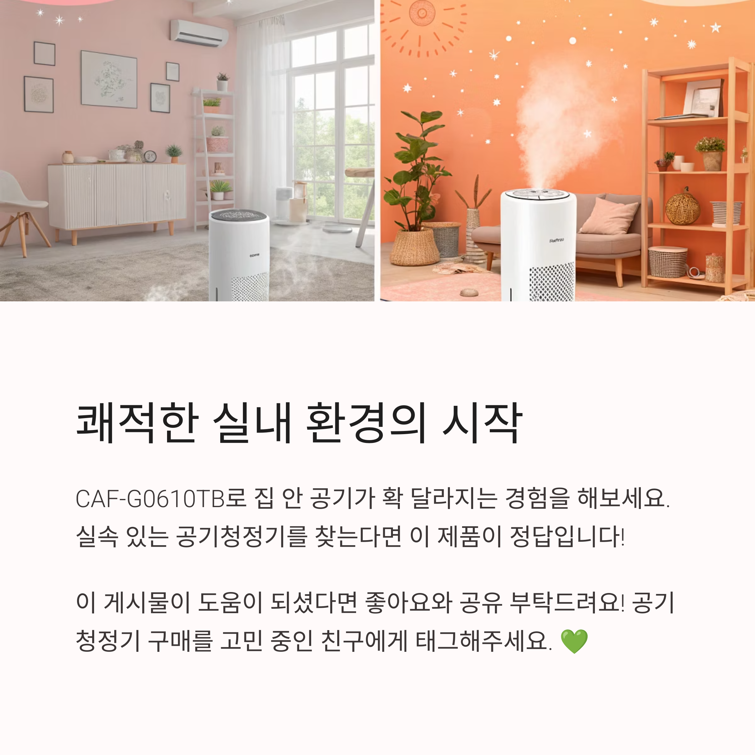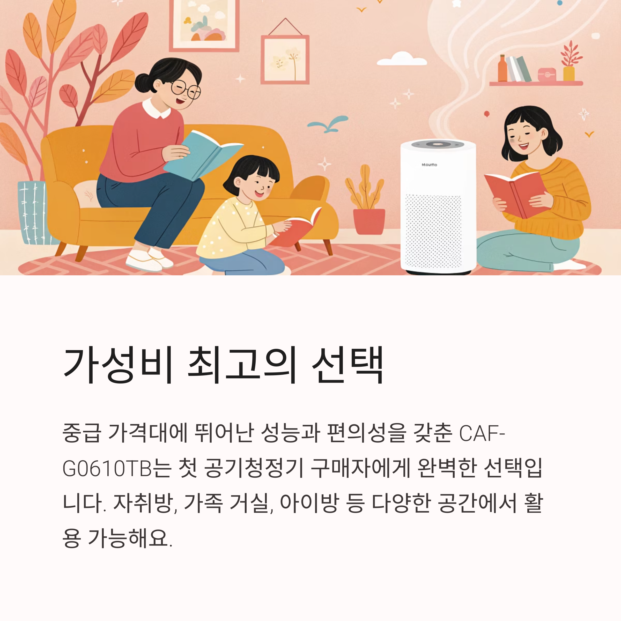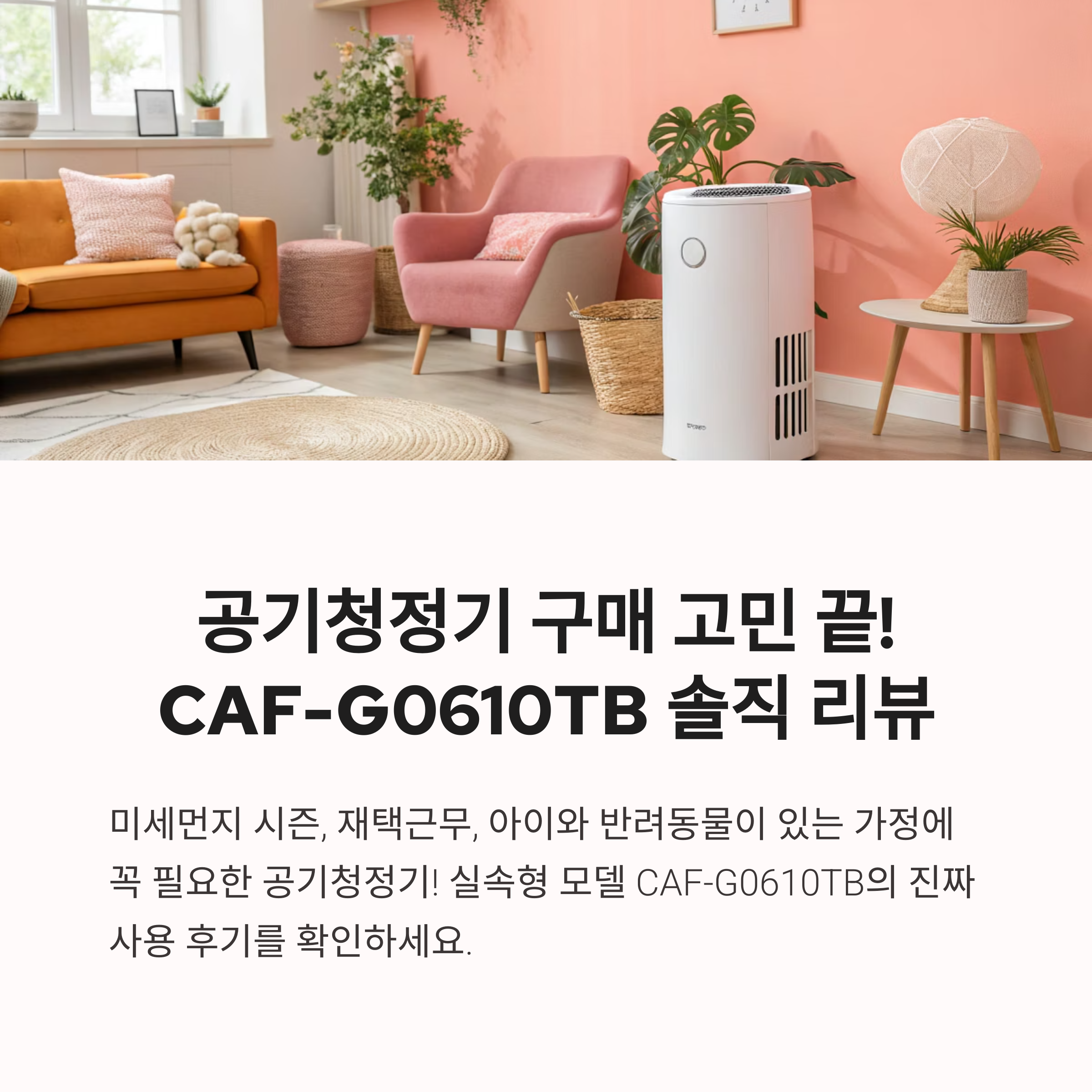 CAF-G0610TB는 실사용 만족도가 높다는 후기들이 많은데, 실제로 써보니 그 이유를 알겠더라고요. 부담 없는 유지비와 안정적인 성능 덕분에 첫 공기청정기 구매자에게도 추천하기 좋았어요.
