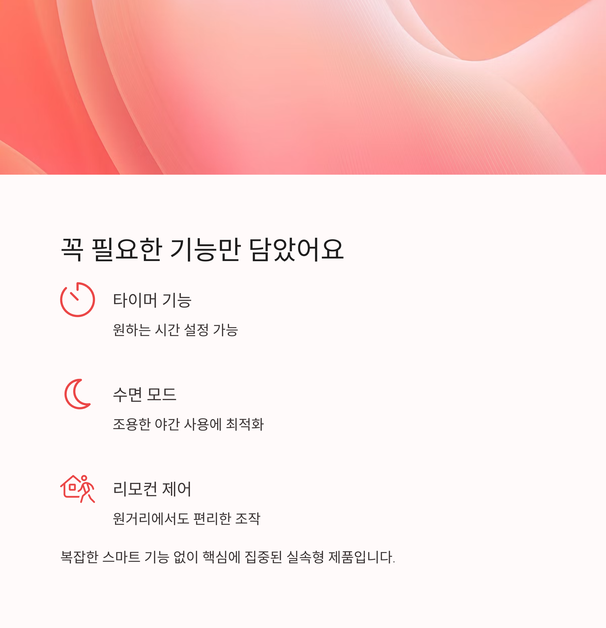 과한 기능 없이 핵심에 집중된 제품이라, 실속형을 찾는 분들에게는 알맞은 구성이었어요. 기기 조작에 부담 없이 바로 사용할 수 있다는 점도 중요한 장점이었답니다.