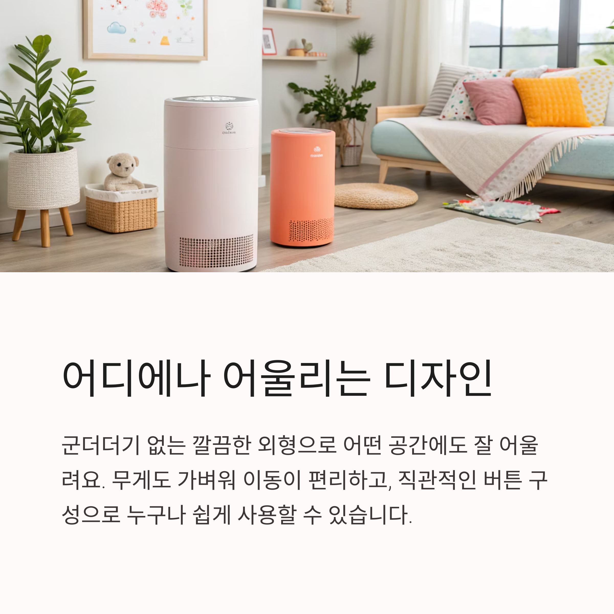 자취방, 가족 거실, 아이방 등 다양한 공간에서 다용도로 사용 가능하기 때문에, 하나쯤 구비해두면 여러모로 쓸모가 많은 모델이었어요. 깔끔하고 실속 있는 공기청정기를 찾는다면 꼭 한 번 검토해보시면 좋겠어요.