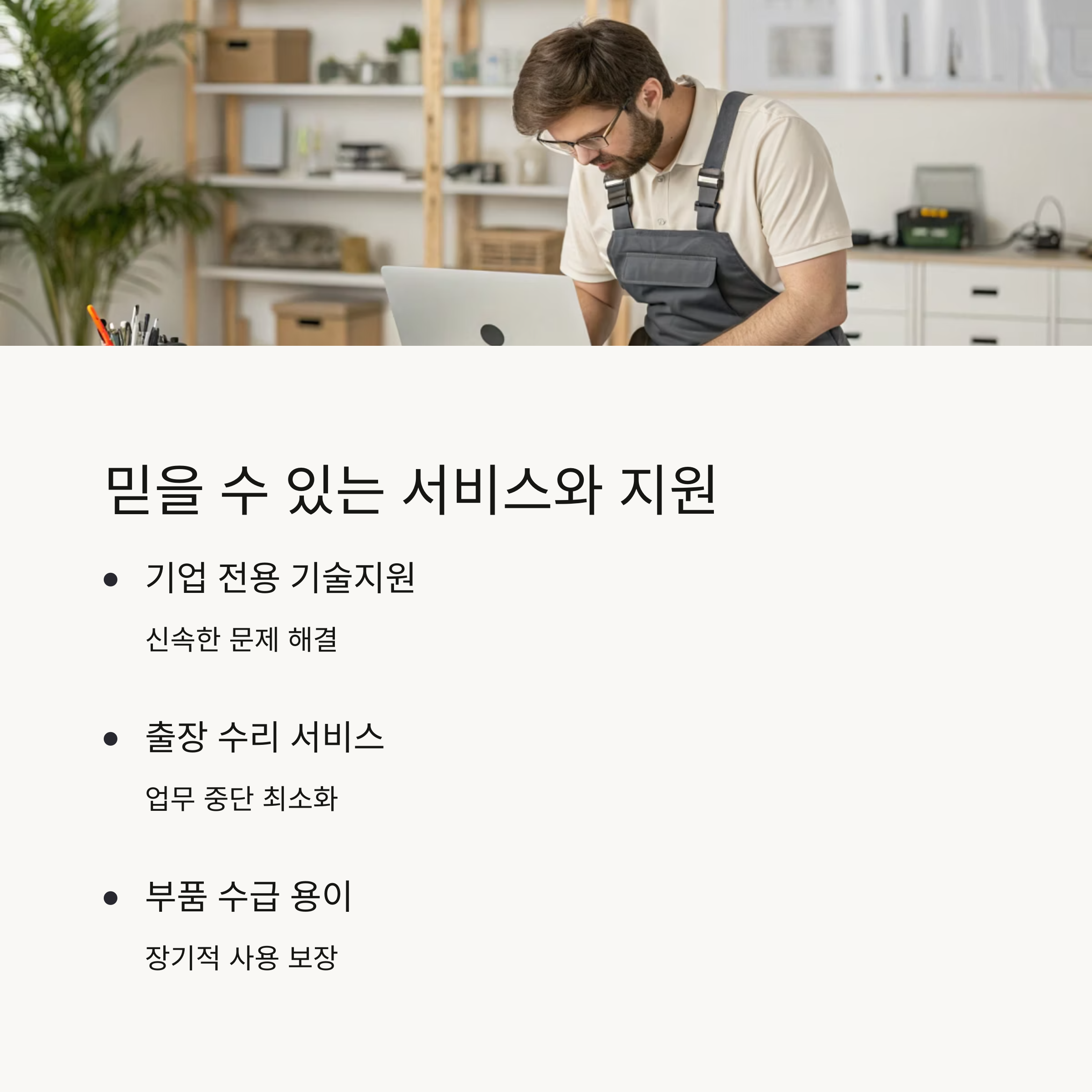 전문 고객센터와 기술 지원, 출장 수리까지 제공되어 만족도가 높아요.