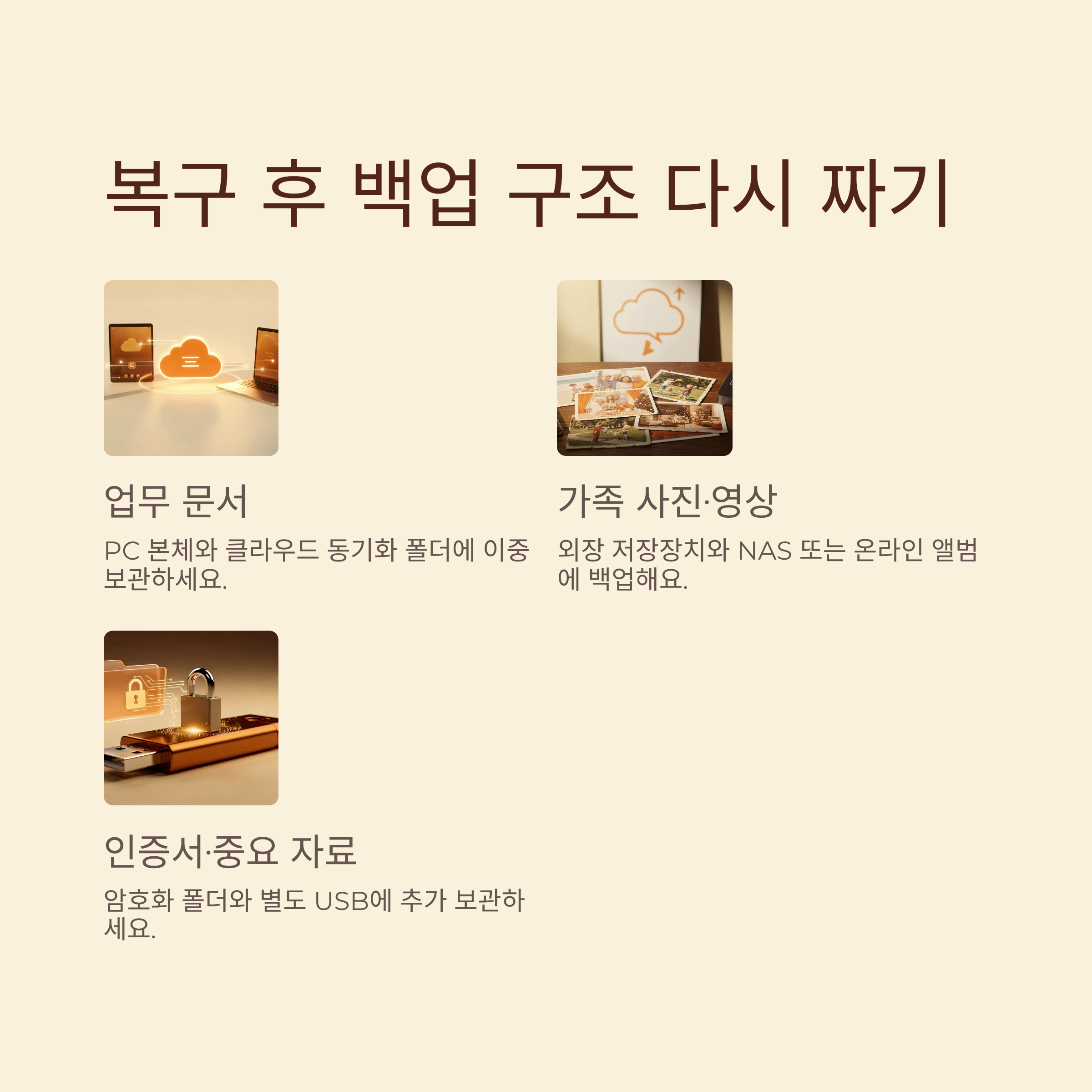 이 카드는 한 번 캡처해서 보관해 두면, 다음에 백업 구조를 다시 짤 때 좋은 기준이 되어 줄 거예요.