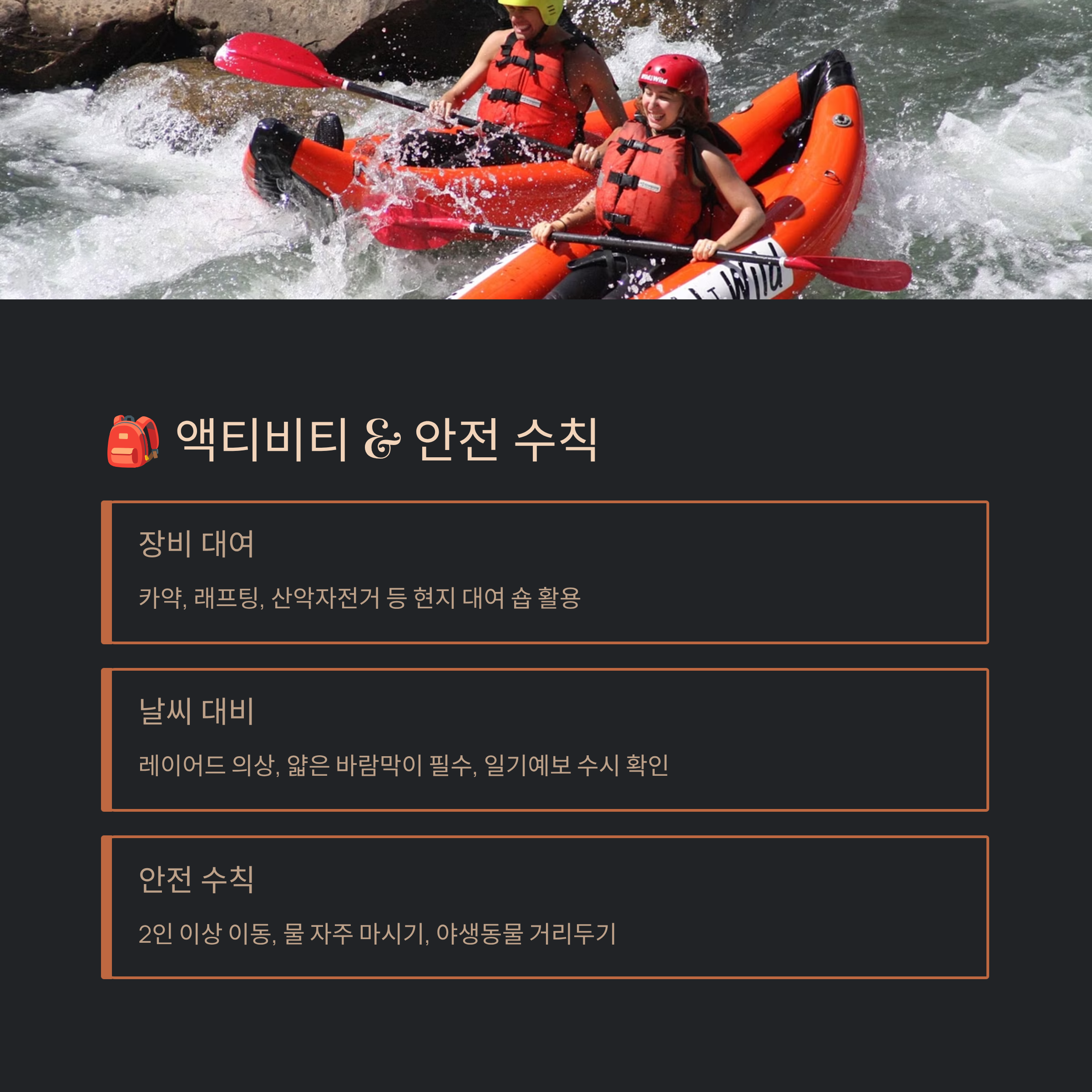 🎒 액티비티 계획: 장비 대여부터 안전 수칙까지