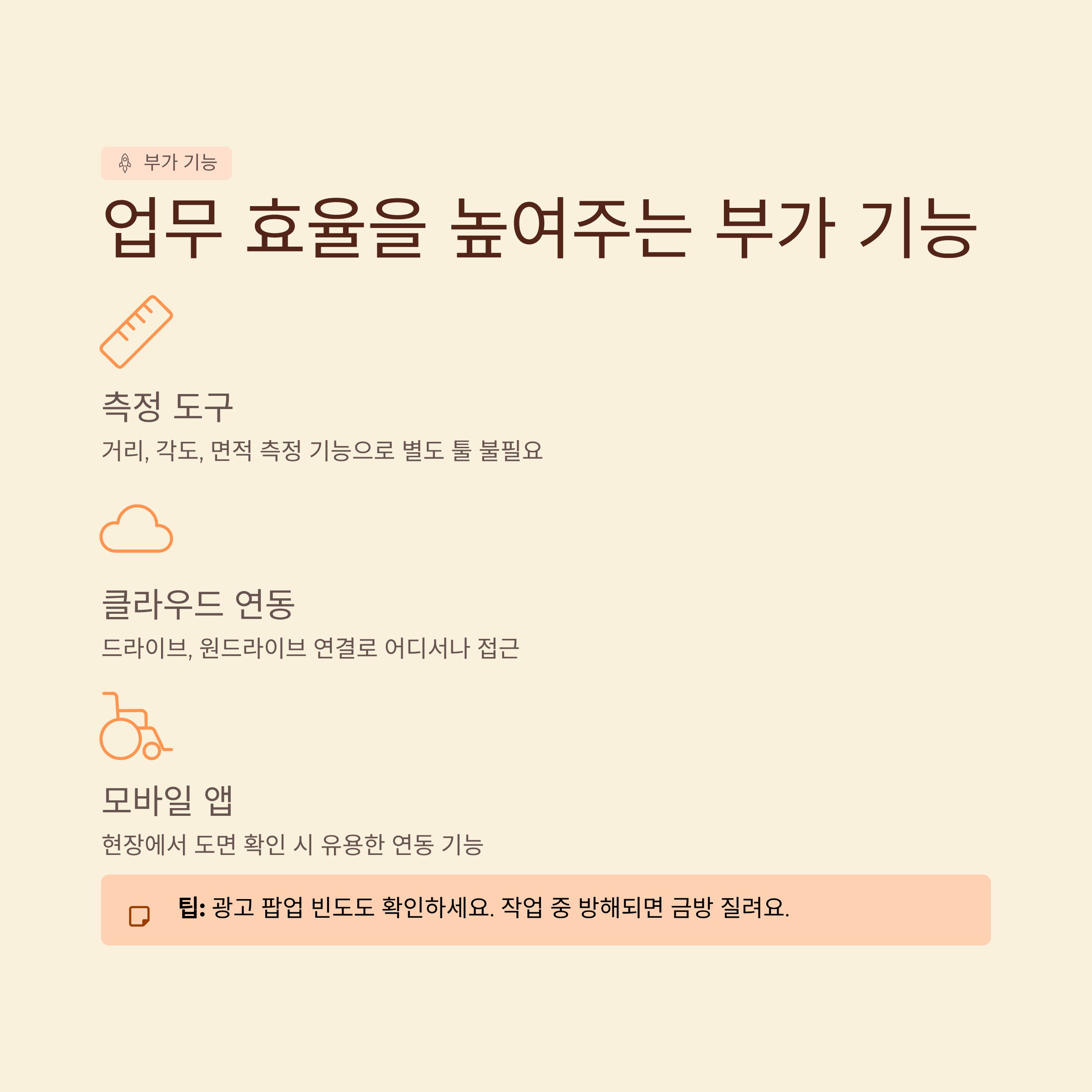 클라우드 저장소와 연동되는 기능도 요즘에는 꽤 유용해요. 사무실에서 열어본 도면을 집이나 현장에서 바로 이어서 보고 싶을 때, 같은 계정으로 로그인만 하면 목록이 그대로 뜨면 정말 편하거든요. 모바일 앱과 연동되는 경우도 있으니, 외부에서 도면을 자주 확인하는지에 따라 선택 기준이 달라질 수 있어요.