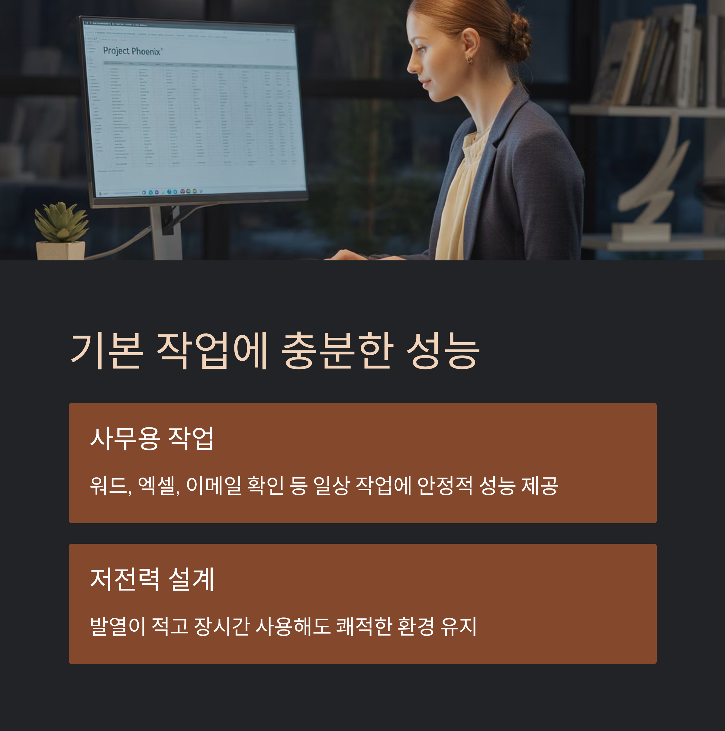 A. 사무용, 가정용, 미니PC 등 저전력 기반 시스템에 잘 어울려요.
