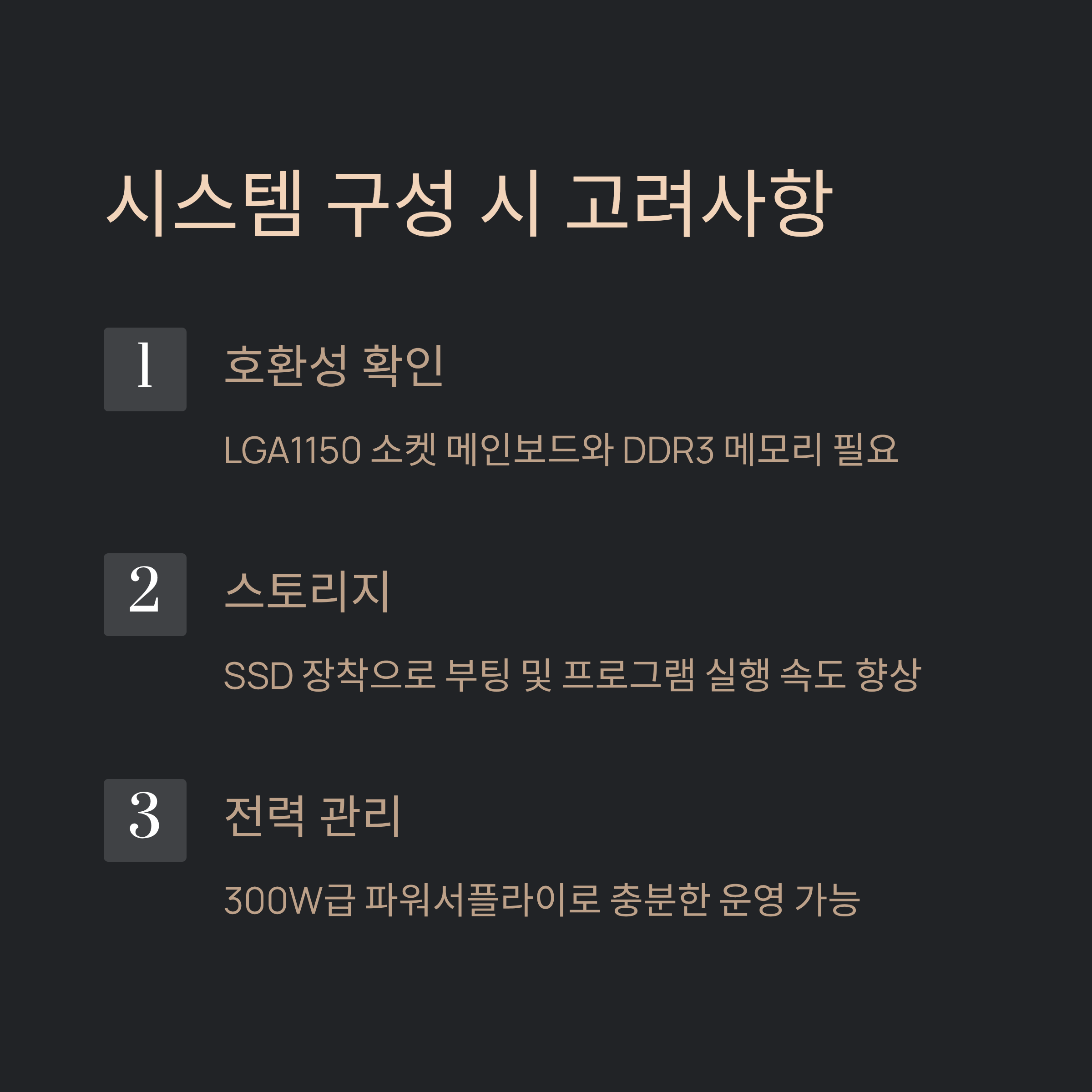 오래된 CPU인 만큼, 메인보드 호환성이나 메모리 종류를 확인하는 게 먼저예요. LGA1150 소켓을 지원하는 보드를 사용해야 하며, DDR3 메모리를 사용하는 구성이 일반적이에요. 최근 시스템은 대부분 DDR4 이상이기 때문에, 기존 부품을 재활용하거나 중고 구성을 고려하는 분들에게 더 어울리는 선택지죠.