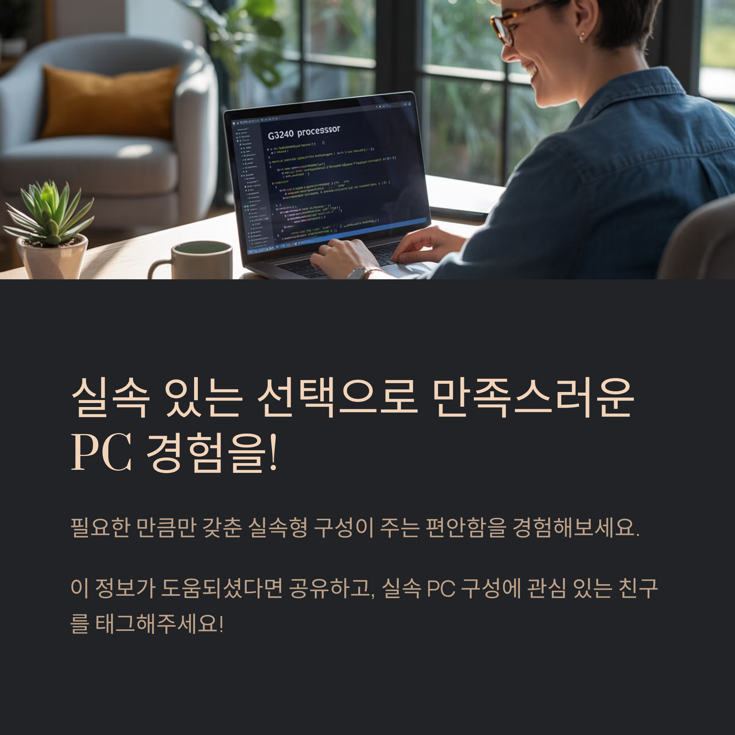 무엇보다 G3240은 오버클럭이나 튜닝보다는 안정성과 실속을 중시하는 분들에게 잘 맞는 CPU예요. 간단한 구성으로 조용하고 튼튼한 시스템을 원하는 분들이라면 만족할 수 있을 거예요.
