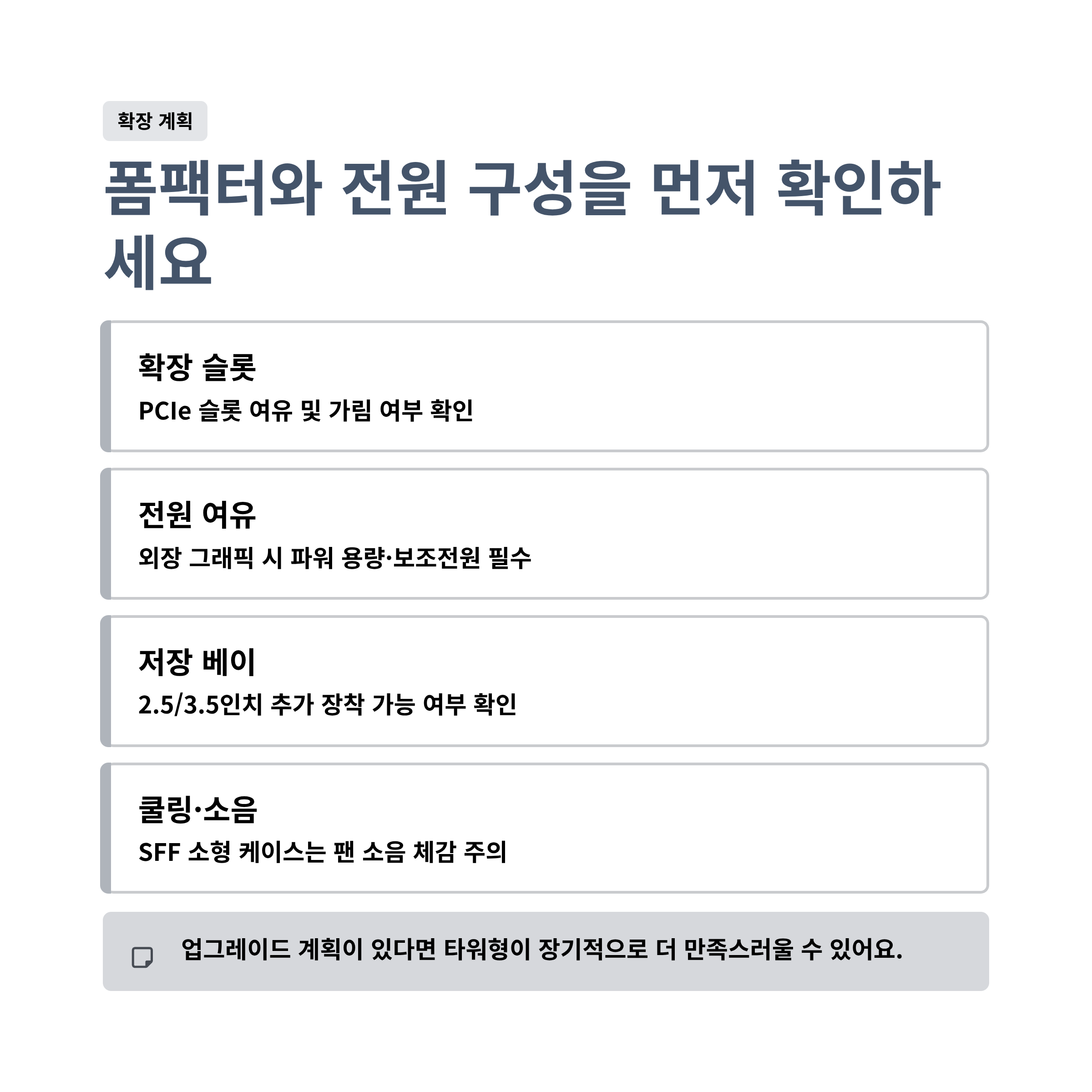 ⚙️ 업그레이드 계획이 있으면 폼팩터와 전원 구성이 먼저예요