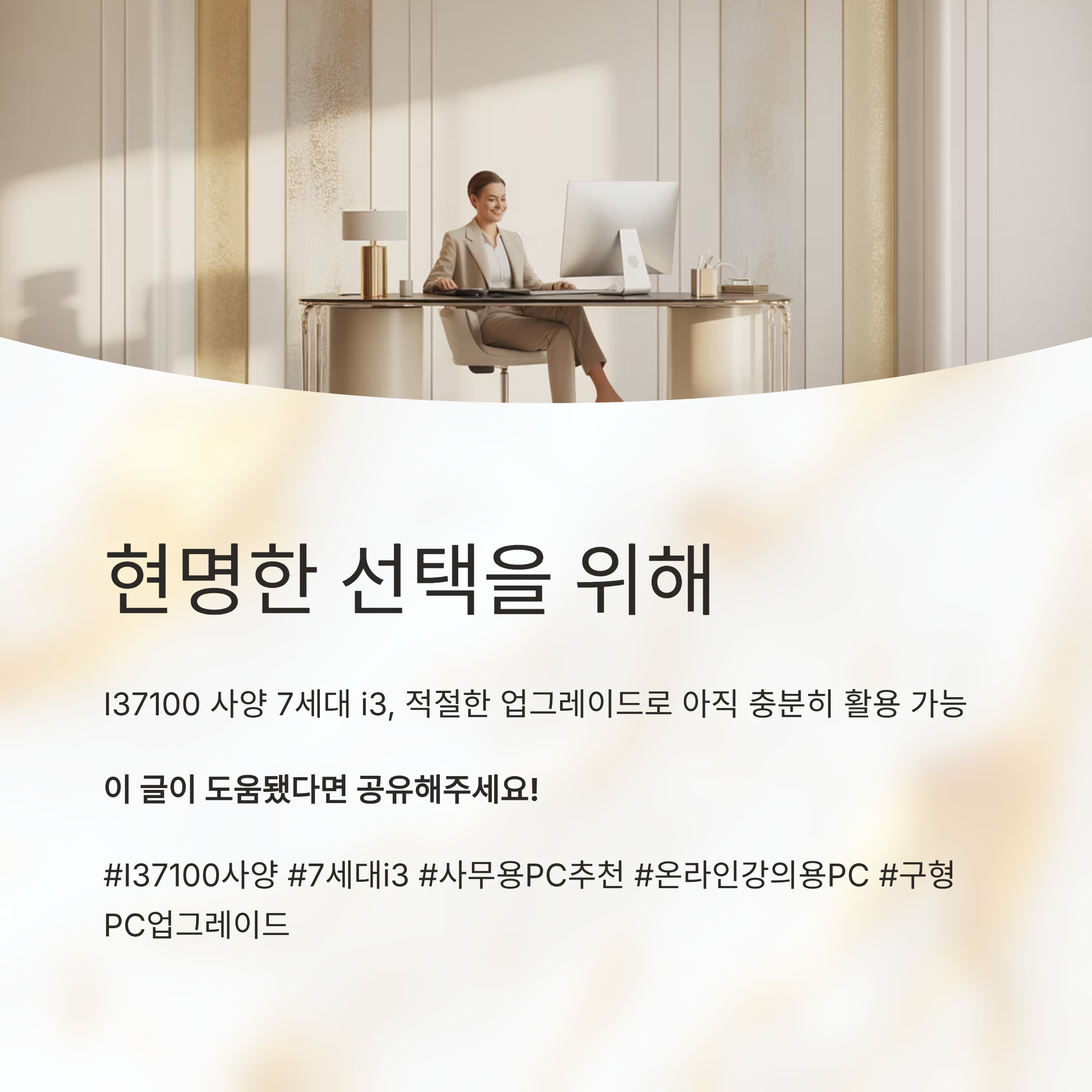 예산이 넉넉하지 않다면, 당장 새 본체를 사기보다 기존 시스템을 손질하면서 시간을 버는 전략도 충분히 가치가 있어요. 업그레이드를 조금씩 해 보면서 어느 순간 “이제는 정말 한계다”라는 느낌이 들 때, 그때가 자연스럽게 세대 교체 시점이 되거든요. 그때까지는 I37100을 메인 혹은 서브 PC로 활용하면서, 새 시스템을 천천히 알아보고 비교할 여유를 만드는 셈이에요.