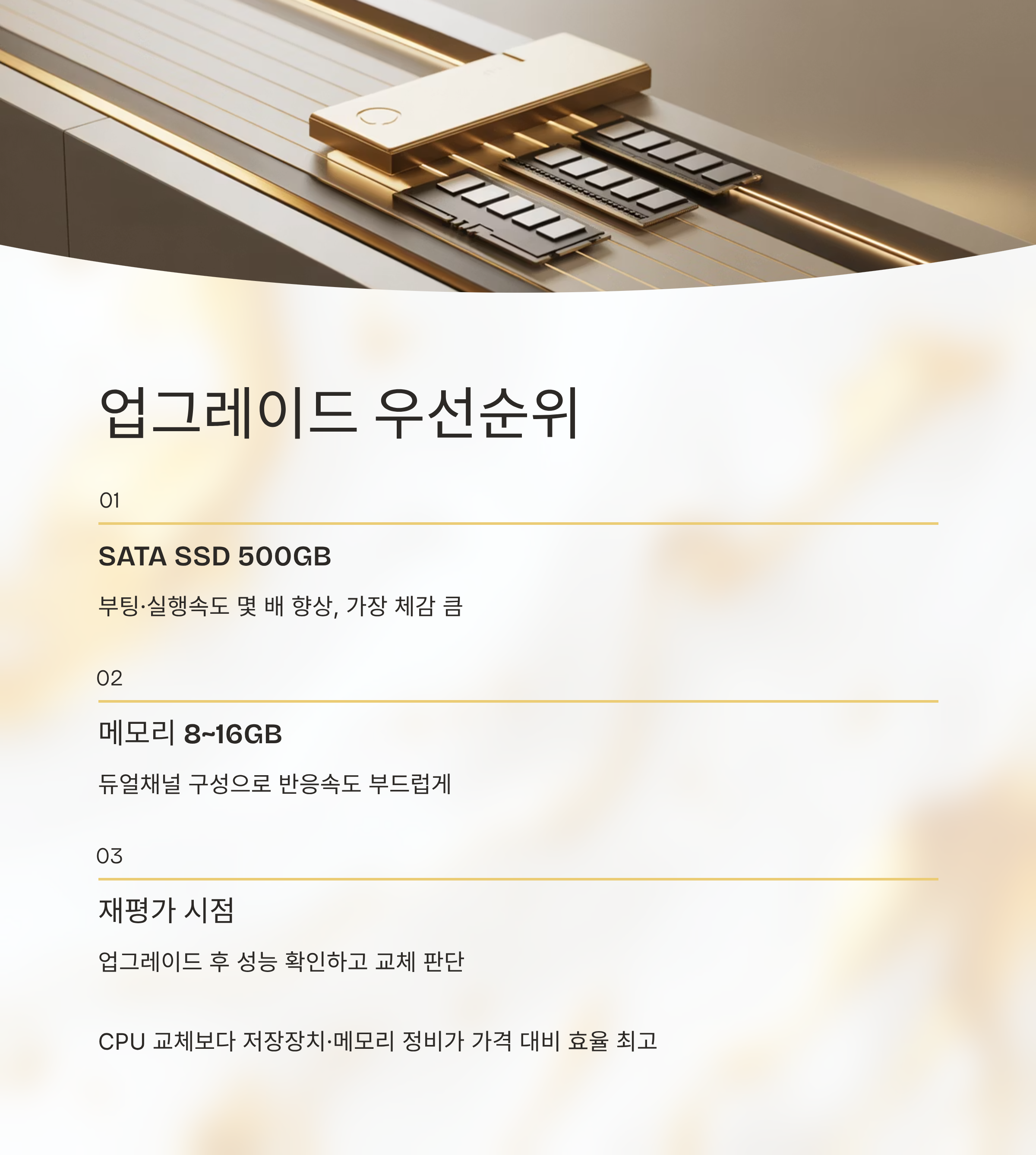 ⚙️ SSD·메모리 업그레이드, 체감 효율이 제일 좋아요