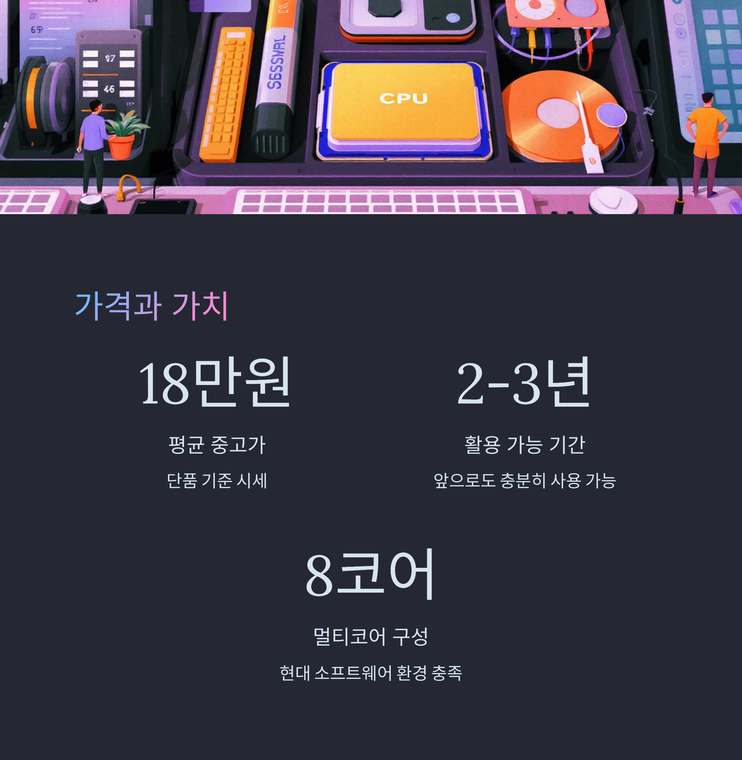 이 제품은 출시된 지 시간이 꽤 지났지만, 여전히 실사용 성능 면에서는 부족함이 없어요. 특히 고성능 CPU가 필요하지만 예산에 한계가 있는 경우, 이 모델은 훌륭한 대안이 될 수 있어요. 게다가 8코어 16스레드 구조는 최신 소프트웨어 환경에서도 안정적으로 작동할 수 있는 구성이에요.