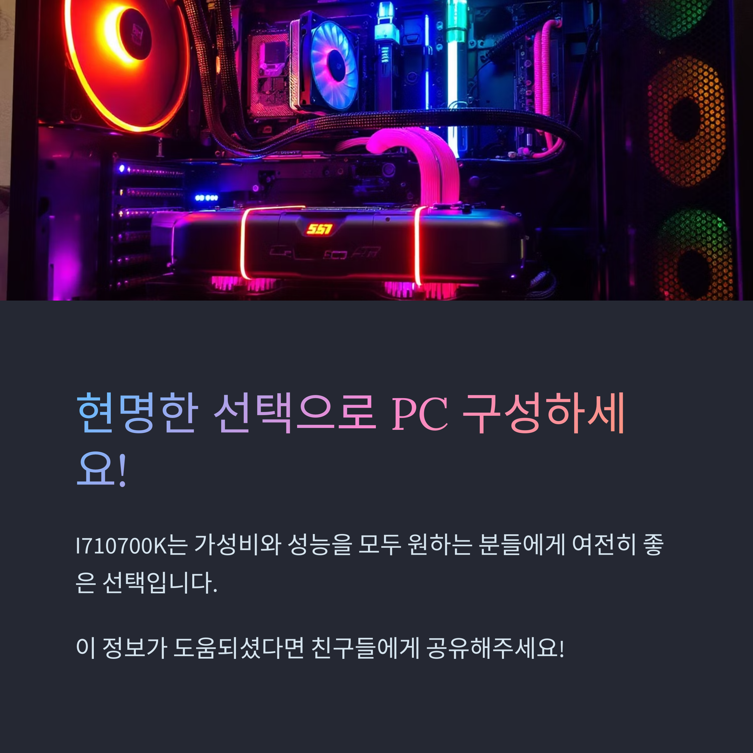 윈도우 11과의 호환성도 문제없고, 적절한 업그레이드만 병행하신다면 2~3년은 충분히 활용하실 수 있어요. 다만 이후 시스템을 완전히 리빌드하실 계획이 있다면, 다음 세대를 염두에 두시는 것도 하나의 방법이 될 수 있어요. I710700K는 지금도 실사용 환경에서는 매우 유용한 선택이에요.