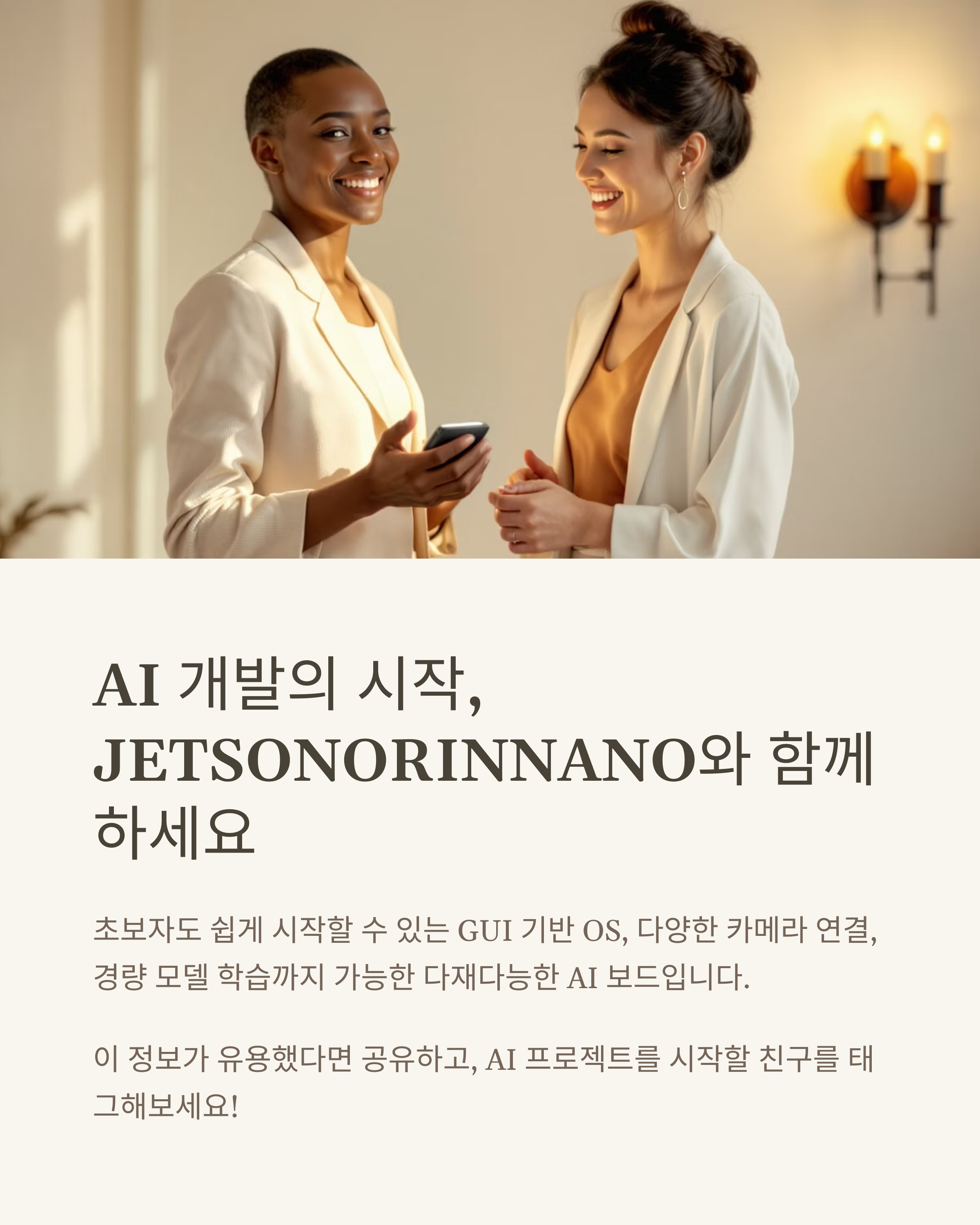 또한 NVIDIA의 기술 지원과 활발한 커뮤니티 덕분에 정보 접근성이 뛰어나고, 오픈소스 리소스 활용도 쉬워요. 접근성과 실용성을 모두 갖춘 JETSONORINNANO는 AI 입문용 장비로도 이상적이