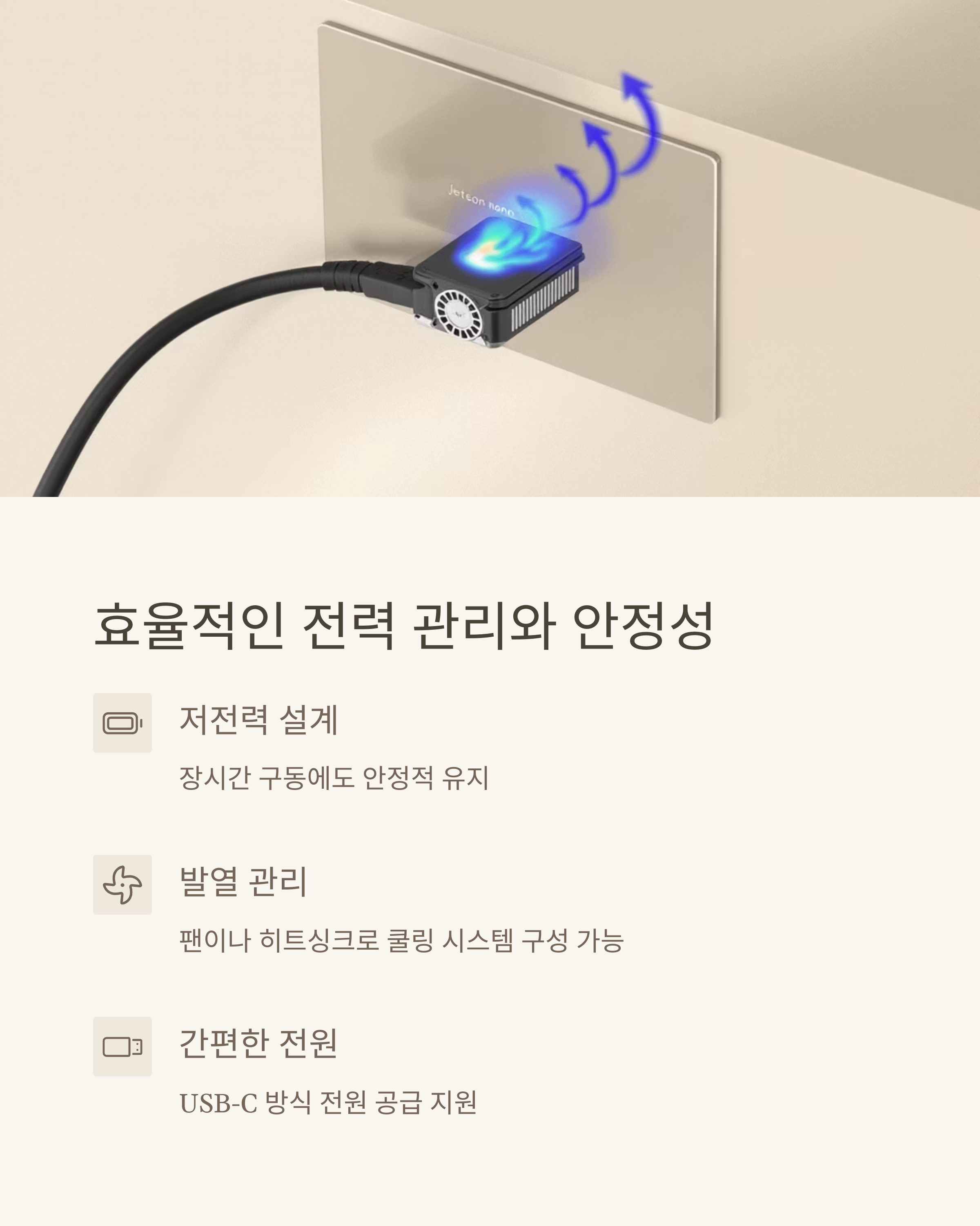 소형 AI 보드에서 놓치기 쉬운 요소 중 하나가 전력 효율성과 발열이에요. 이 보드는 기본적으로 저전력 소비를 기반으로 설계되어 있어 장시간 구동 시에도 시스템의 안정성을 유지할 수 있어요. 팬 또는 히트싱크를 활용한 쿨링 시스템을 구성하면 더 안정적인 운영이 가능해요.