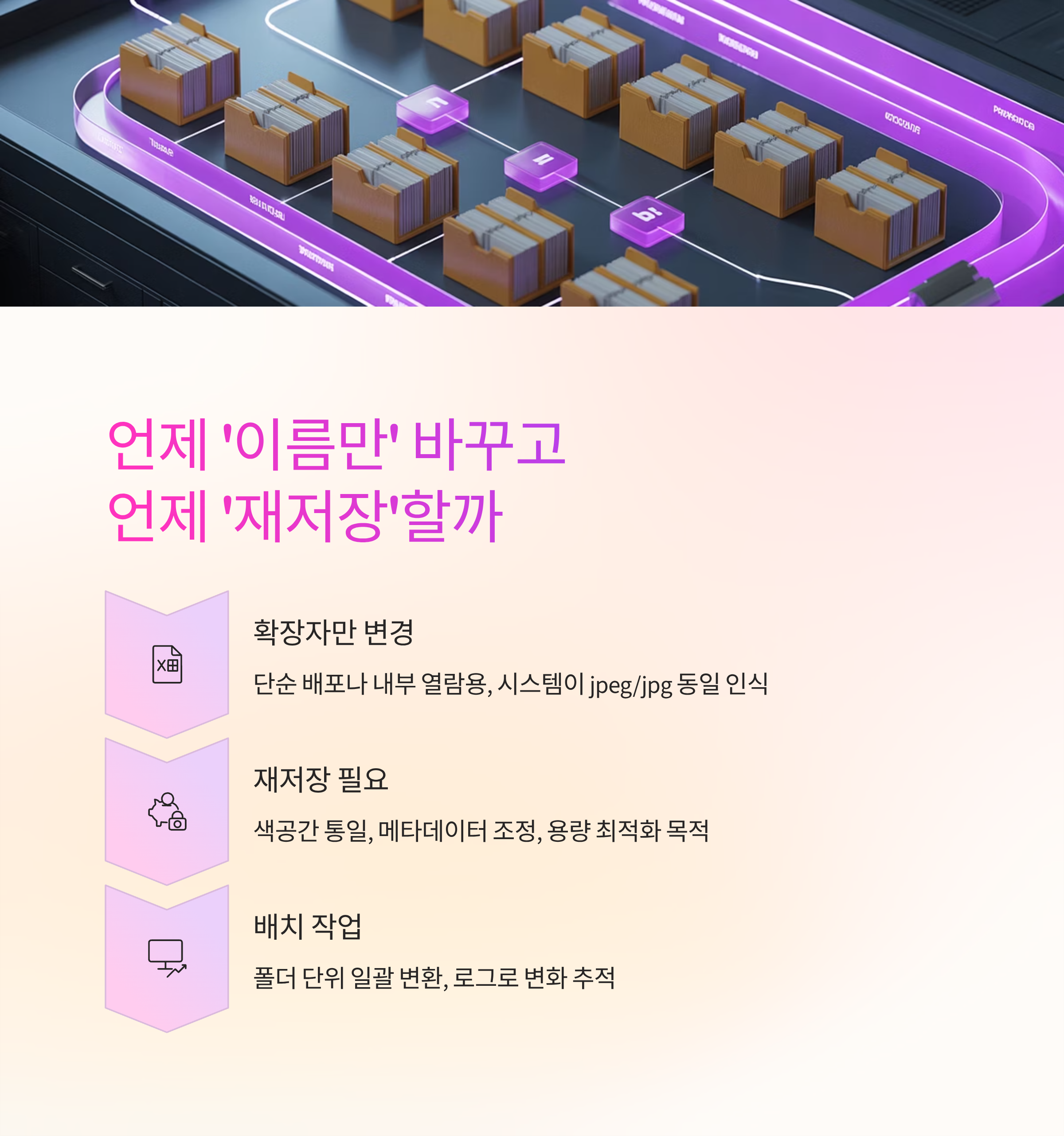 확장자만 다르고 같은 거라던데, 막상 바꾸려면 어디부터 손대야 할지 헷갈리기 쉬워요. 이름만 바꿔도 될 때가 있고, 다시 저장해야 하는 경우도 있거든요. 품질 수치, 색공간, EXIF 정보가 섞이면 결과가 달라져서 보고서나 쇼핑몰 등록에서 낭패를 많이 보시더라고요. 오늘은 언제 단순 변경으로 끝내고, 언제 재인코딩을 해야 안전한지, 그리고 화질을 거의 잃지 않고 용량도 줄이는 기준을 차근히 정리해볼게요. 알고 보면 정말 간단해요.