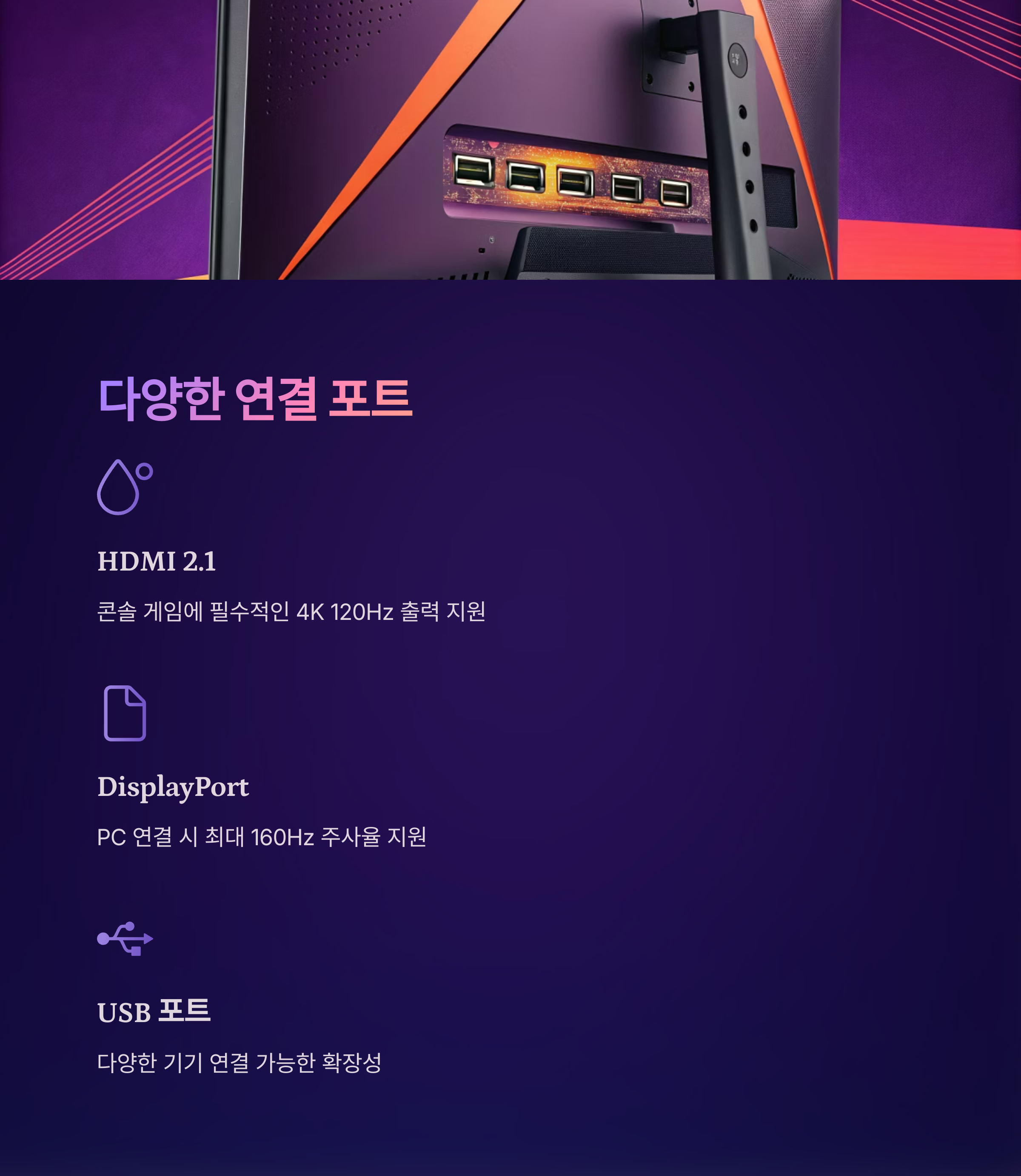 HDMI 2.1 포트 사용 시 콘솔 연결도 4K 120Hz 지원됩니다.