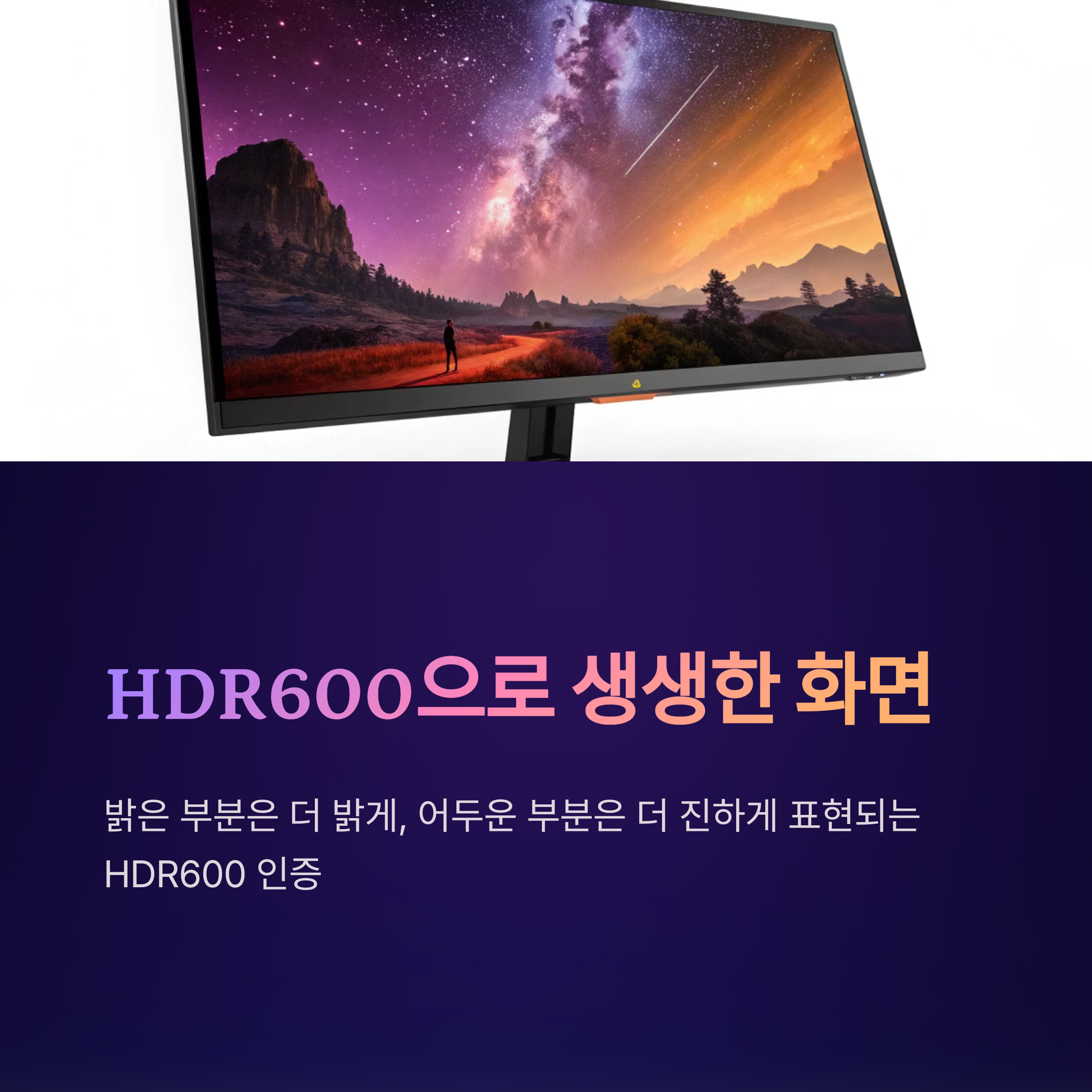 그리고 HDR600 인증을 받아서 밝은 부분은 더 밝게, 어두운 부분은 더 진하게 표현되는 것도 큰 장점이에요. 실제로 플레이할 때 화면에 깊이감이 느껴져서 몰입감이 훨씬 높아지더라고요.