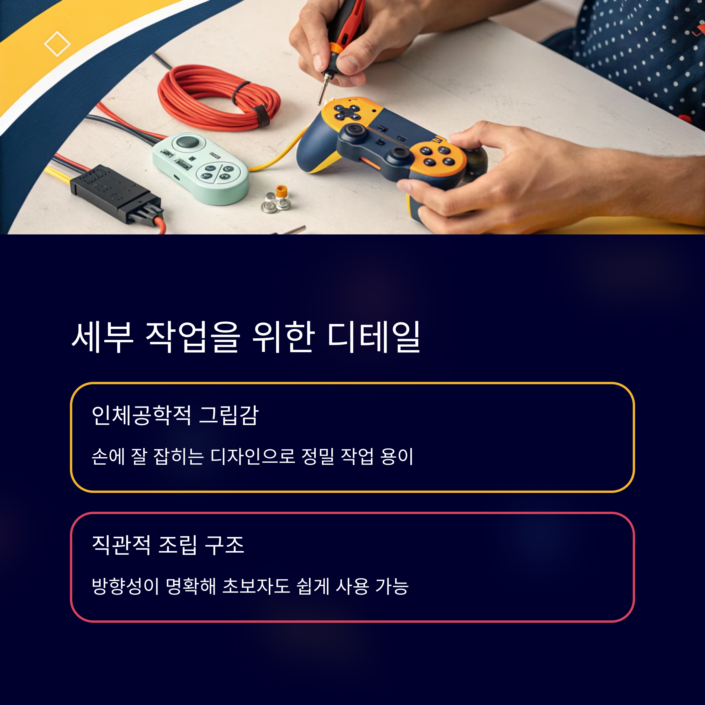 작업하면서 가장 만족스러웠던 부분은 손에 잘 잡히는 디자인이었어요. 특히 정밀한 작업할 때는 손에 익는 감각이 중요한데, 이 제품은 그립감이 안정적이라 조작이 훨씬 수월했어요.