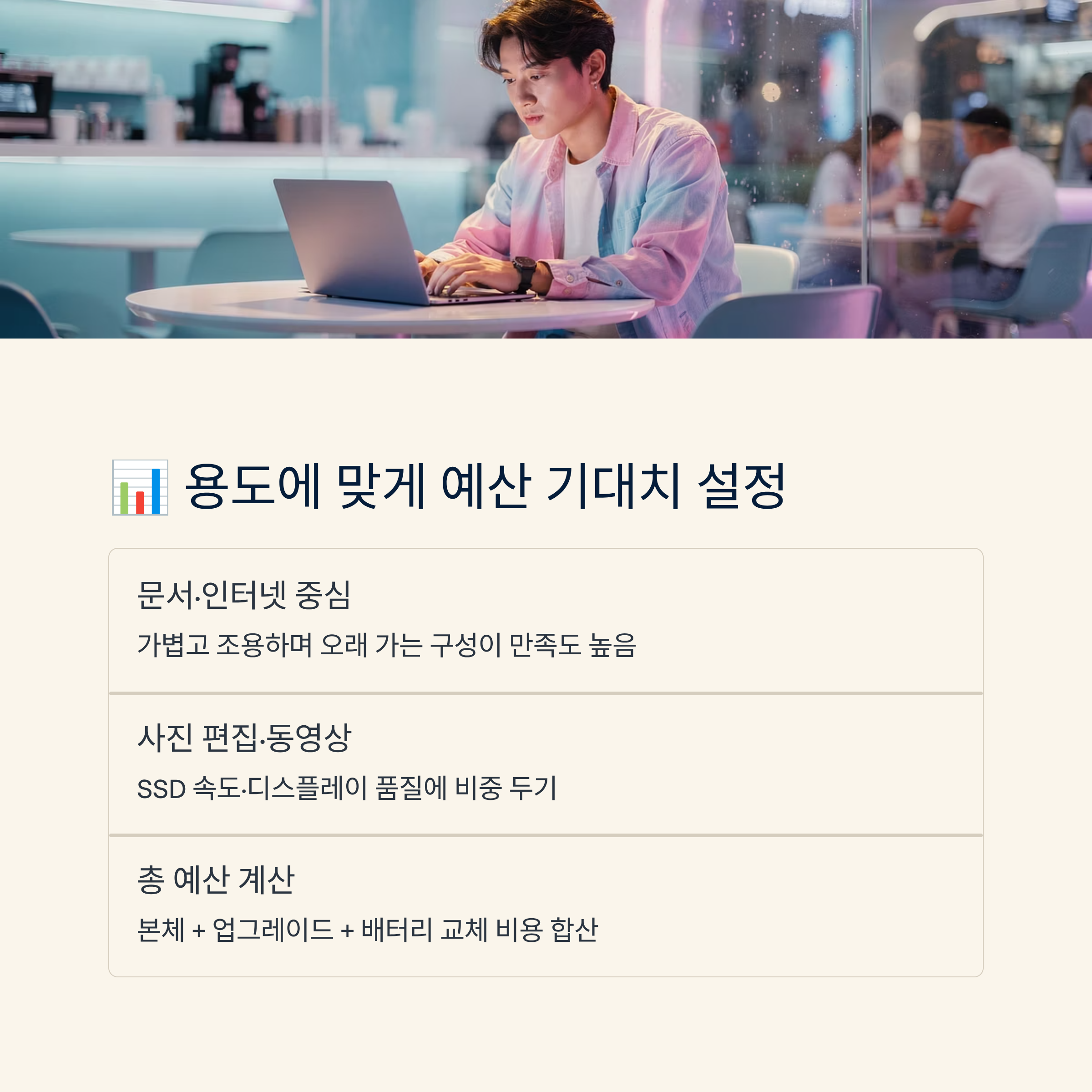 예산을 정할 때는 본체 가격뿐 아니라 업그레이드·배터리 교체·간단한 정비 비용까지 합쳐서 생각해 보는 것이 좋아요.