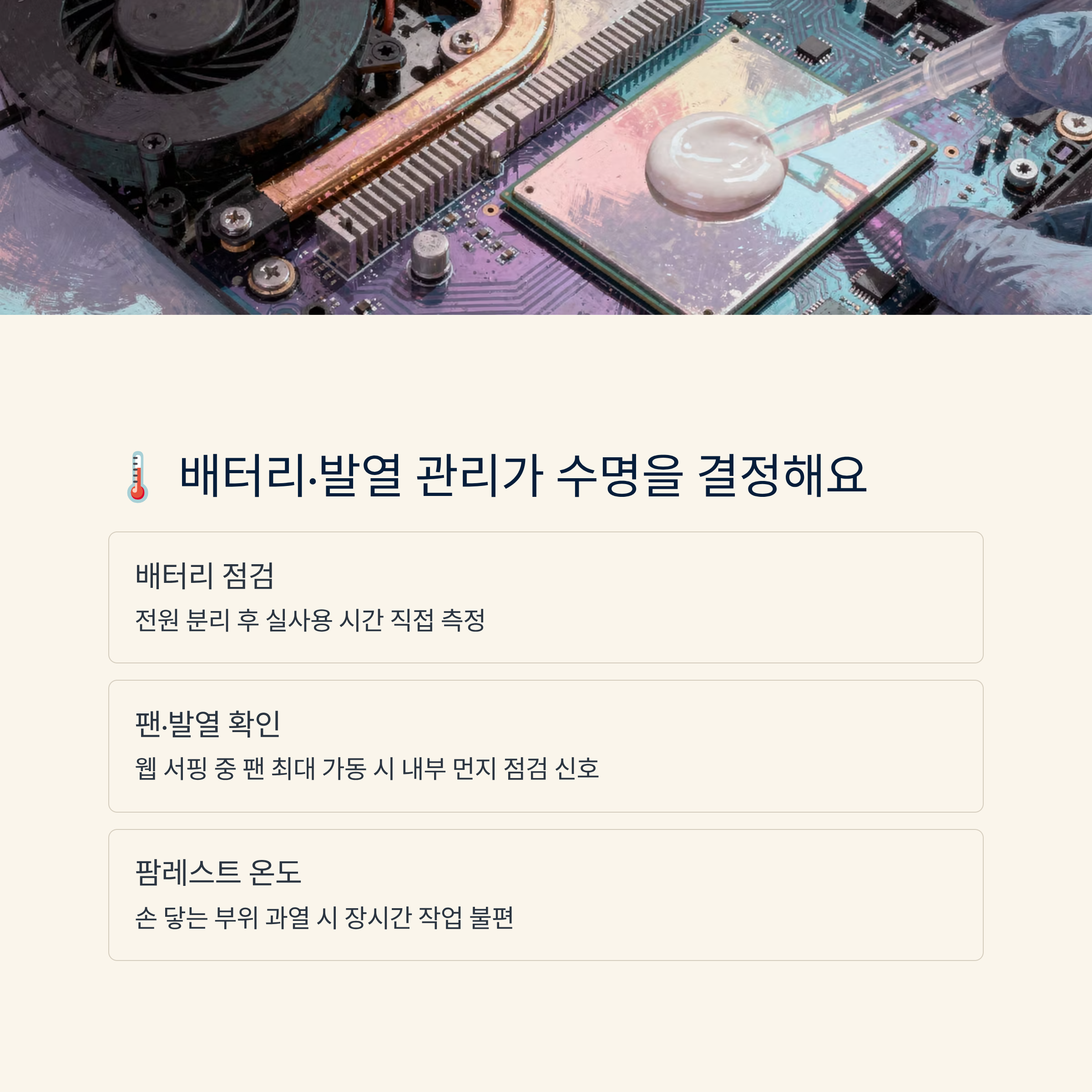 🌡 배터리와 발열 관리 상태가 노트북 체감 수명을 크게 좌우해요