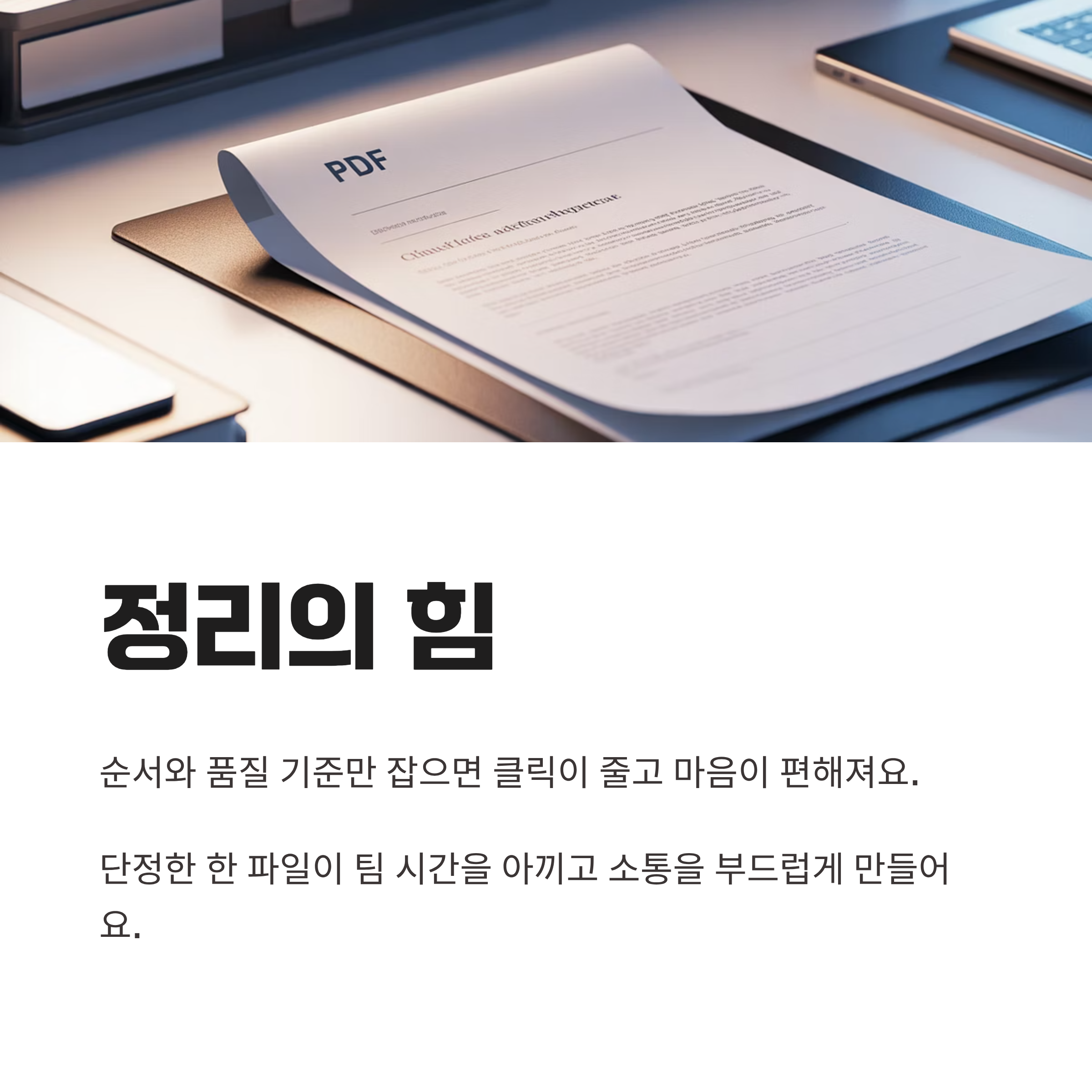 문서를 합치는 일은 생각보다 ‘정리의 힘’이 크더라고요. 순서와 품질 기준만 잡아두면 클릭이 줄고, 마음이 먼저 편해져요. 오늘 정리한 루틴을 자신의 방식으로 살짝만 고쳐도 다음 작업이 훨씬 수월해질 거예요. 단정한 한 파일이 팀의 시간을 아끼고, 커뮤니케이션을 부드럽게 만들어줘요. 곧 체감하실 거예요.