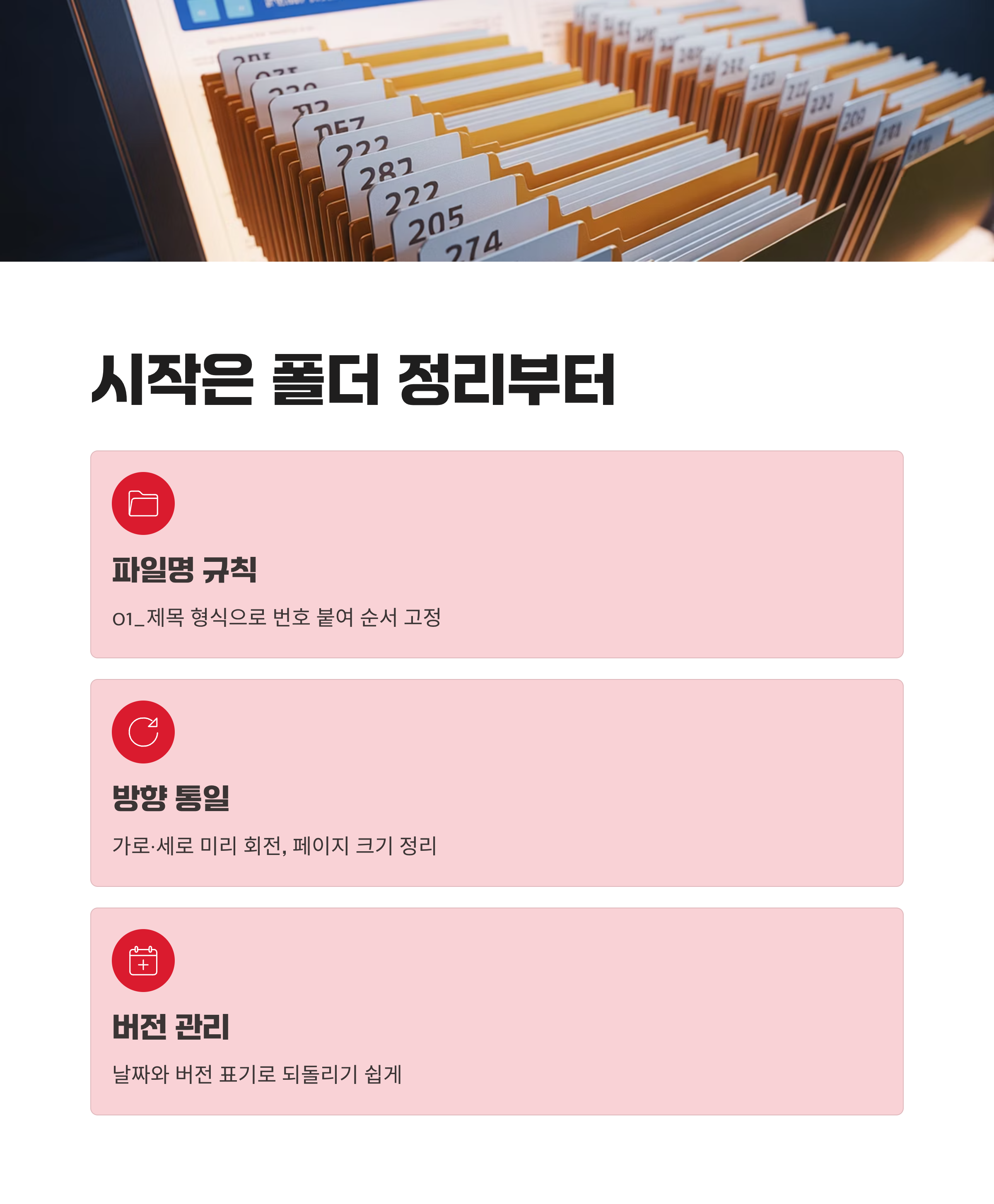 검토 주고받기가 잦다면 변경 이력을 파일명에 남기고, 승인본만 ‘배포’ 폴더로 이동해 관리해요. 이 작은 규칙 하나로 이후 추적이 훨씬 쉬워져요. 덕분에 다음 병합도 같은 흐름으로 빠르게 재현할 수 있어요.