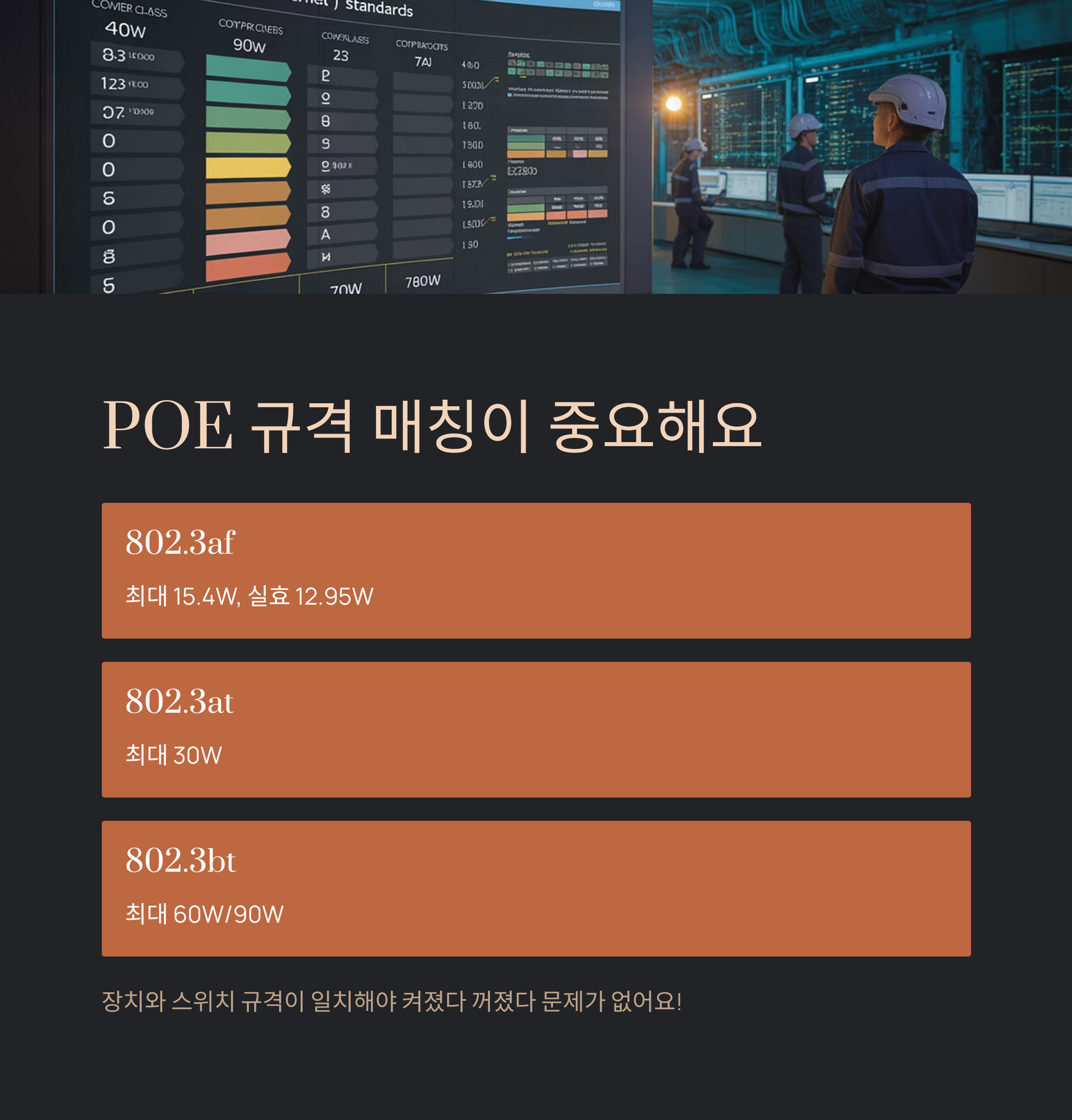 IP 카메라나 무선 AP, 인터폰, 소형 컨트롤러까지 선 하나로 전원과 데이터를 동시에 해결하면 진짜 속이 편해요. 어댑터 전원선 따로, 랜선 따로 끌지 않아도 되고, 천장 위에서 어댑터가 떨어질까 걱정할 일도 없죠. 다만 막상 쓰다 보면 밝은 낮엔 잘 되던 카메라가 밤에만 꺼졌다 켜진다든지, 회의실 AP가 사람 많을 때만 느려지는 식의 애매한 문제가 생겨요. 대부분은 전원 예산 계산이 헐겁거나, 케이블 길이와 규격, 포트 클래스 매칭, 업링크 병목 같은 기본기에서 갈라지더라고요. 겉으로 보기엔 비슷한 스위치라도 내부 전원 용량, 포트별 제한, 관리 기능에서 성격이 완전히 달라요. 오늘은 처음 고를 때의 기준부터 배선·설치, 속도 튜닝, 보안·관리, 장애 대응과 확장까지 ‘현장에서 바로 쓰는 순서’대로 정리해볼게요. 복잡해 보여도 흐름만 잡으면 생각보다 쉽게 안정 구간이 나와요. 그럼 지금 환경에서 가장 먼저 체크해야 할 포인트부터 짚어볼까요?