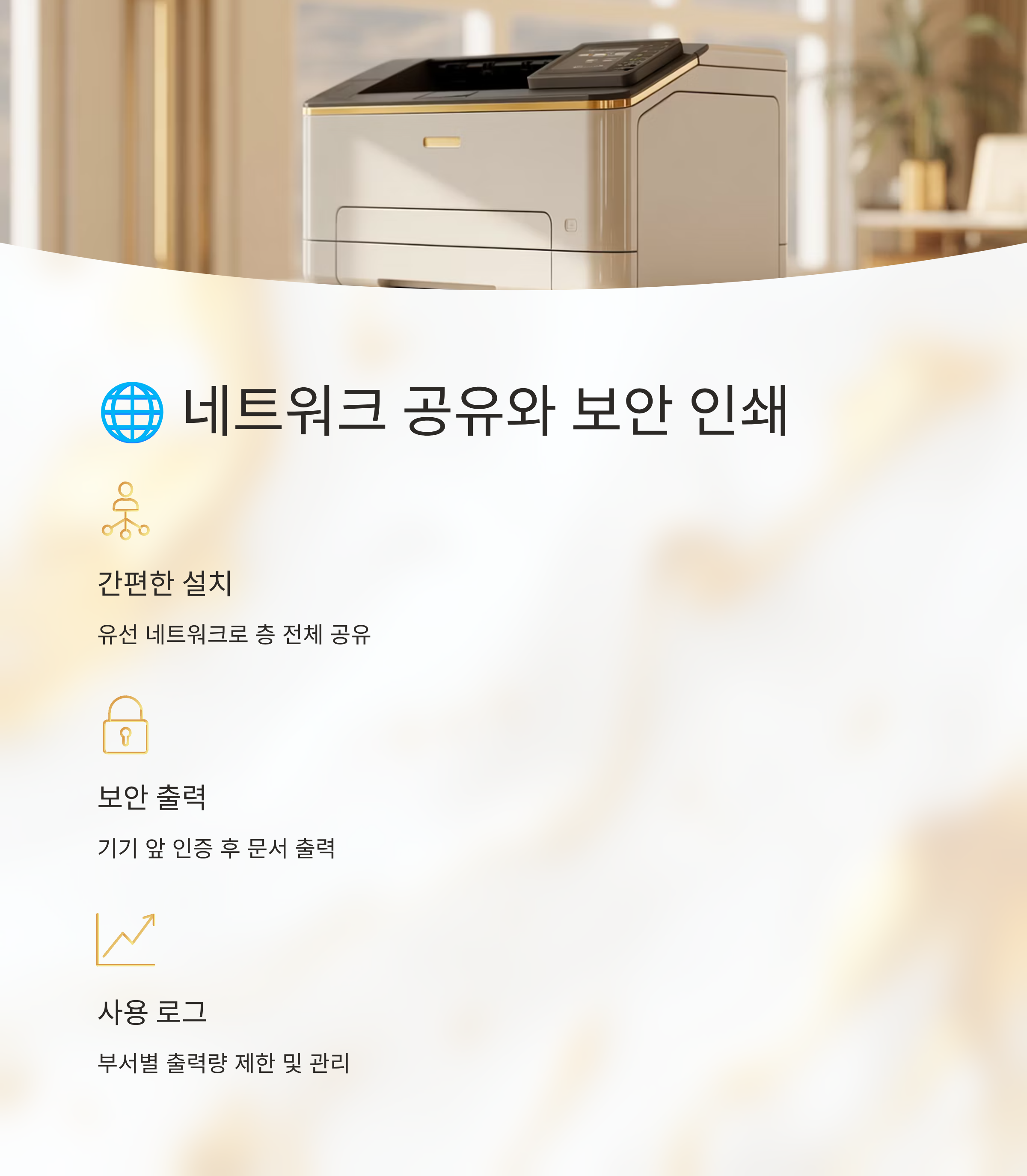 보안 측면에서도 요즘은 단순 출력 이상의 기능이 필요해요. 중요 문서는 자리에서 출력 명령만 내려두고, 본인이 기기 앞에 가서 인증 후 출력하는 보안 인쇄 기능이 있으면 훨씬 안심이 되거든요. 부서별로 출력량을 제한하거나 사용 현황을 로그로 남기는 기능이 있다면, 사용 패턴을 파악해서 장비 증설이나 재배치를 계획하기도 좋아요. 이런 관리 기능이 사무실 전체 효율과 토너 비용을 함께 조절해 주는 느낌이에요.