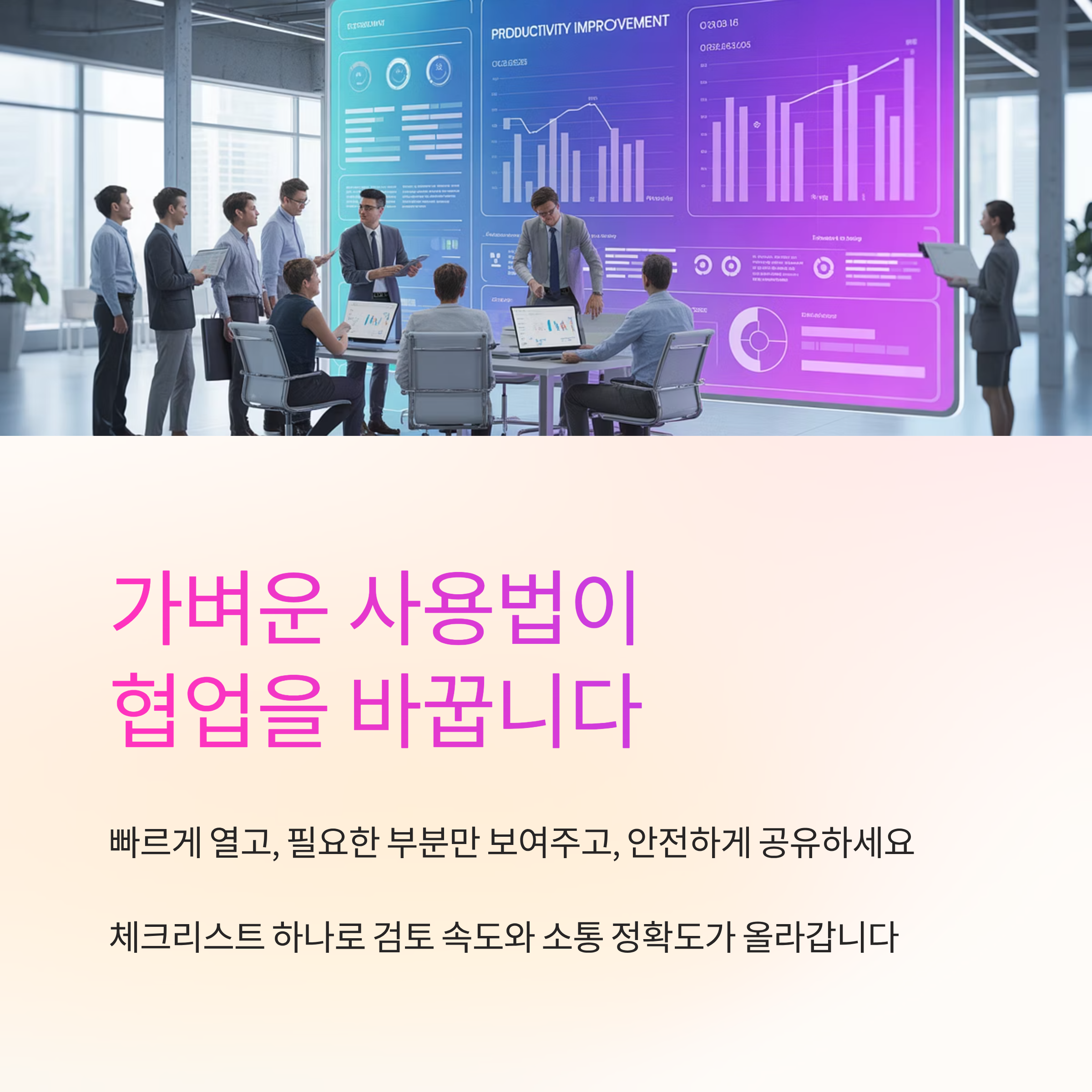 결국 중요한 건 복잡한 기능보다도 목적에 맞는 가벼운 사용법이에요. 빠르게 열고, 필요한 부분만 또렷하게 보여주고, 안전하게 공유하면 대부분의 협업이 부드럽게 흘러가요. 오늘 정한 기준을 작은 체크리스트로 만들어 두고, 다음 파일부터 바로 적용해보세요. 처음엔 낯설어도 몇 번만 반복하면 검토 속도와 소통 정확도가 눈에 띄게 올라갈 거예요.