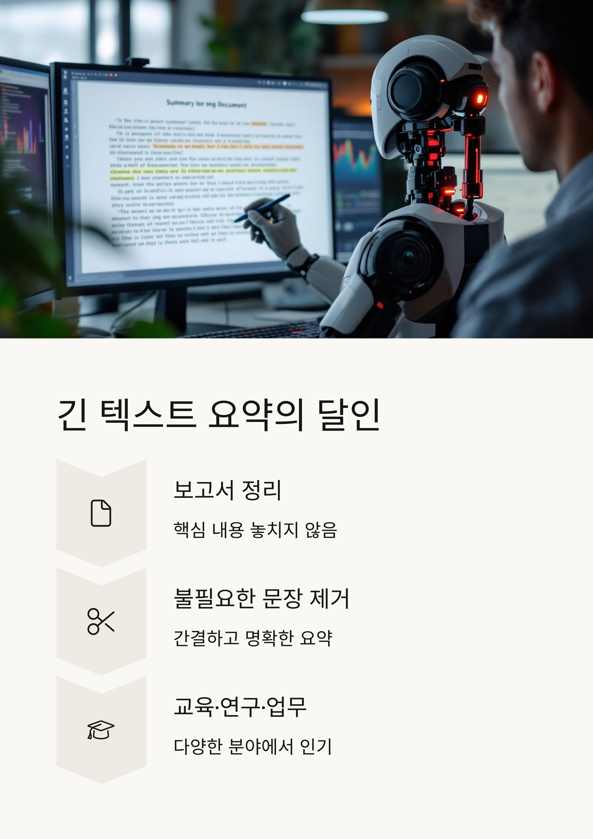 핵심 내용을 놓치지 않고 정리하며, 불필요한 문장을 줄여줘요.