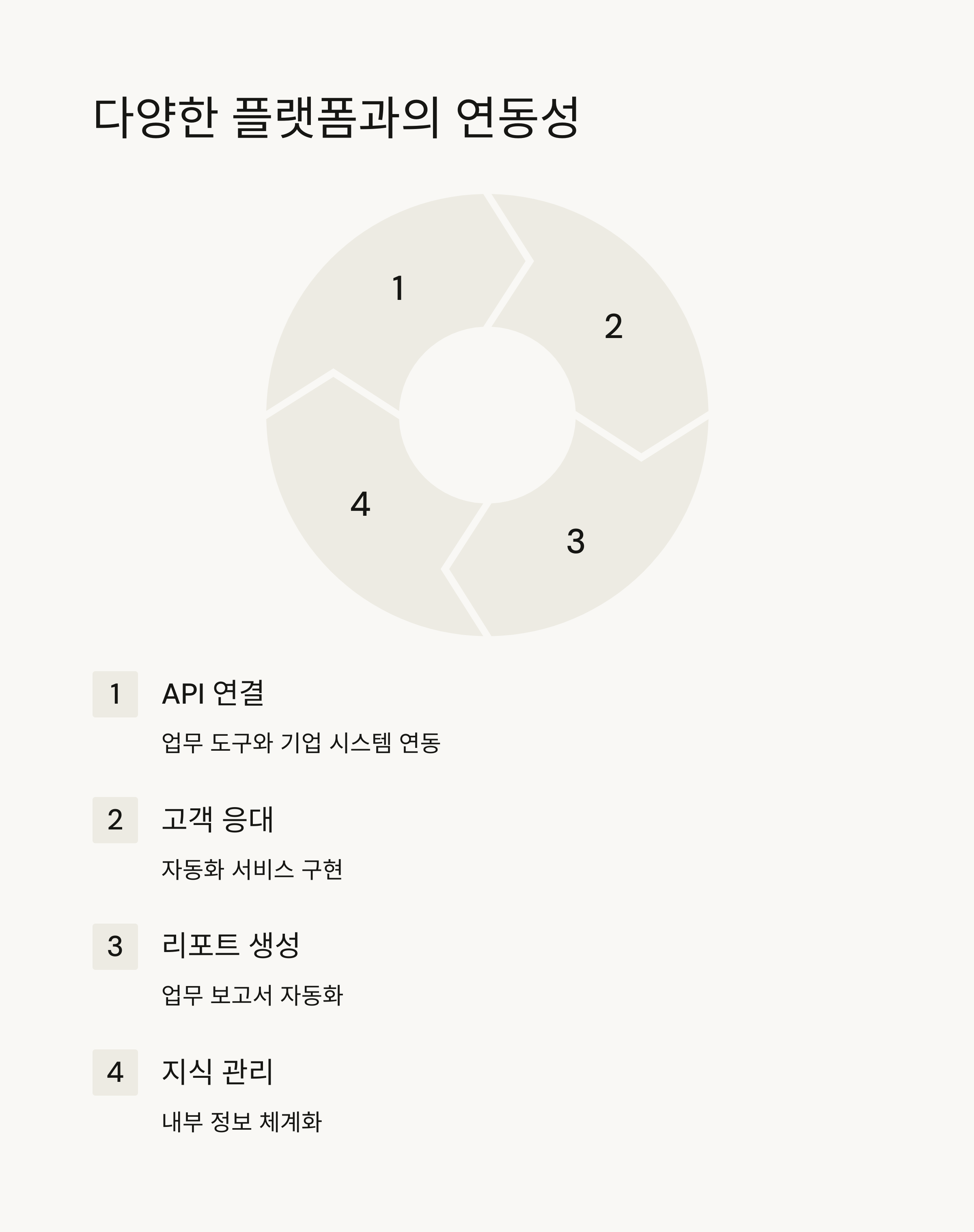 고객 응대 자동화, 업무 리포트 생성, 내부 지식 관리까지 확장성이 좋아요.